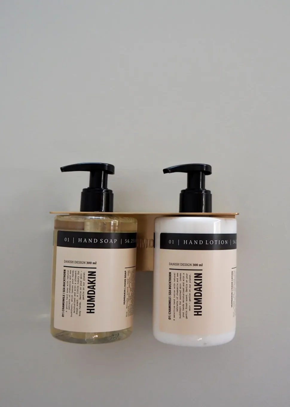 Verwenden Sie den Flaschenhalter, um Ihre Flaschen an der Wand im Badezimmer oder wo immer Sie wollen aufzuhängen. Das Produkt ist perfekt für alle, die ein gut organisiertes und stilvolles Badezimmer haben möchten.