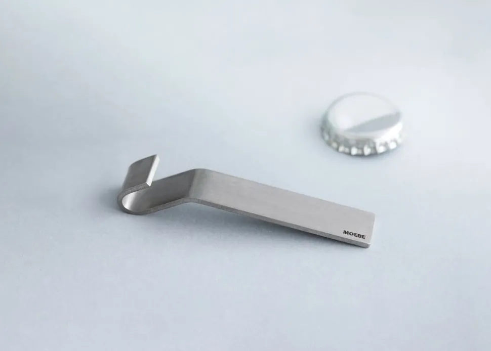 Der von Moebe mit unnachahmlicher Präzision gefertigte „Flaschenöffner“ ist ein Beispiel für die Harmonie von Funktion und Eleganz. Aus einem einzigen Stück Metall entsteht eine ausdrucksstarke Form, die allein der Kunst des Flaschenöffnens gewidmet ist. Seine erlesene Materialwahl, ob Stahl oder Messing, verleiht Ihrer Küche oder Ihrem Esszimmer nicht nur einen Hauch von schlichter Eleganz, sondern erhebt das Ritual des Genießens eines wohlverdienten Getränks. Jede Kontur spiegelt die durchdachte Handwerkskunst wider und macht ihn zu mehr als einem bloßen Werkzeug – er ist ein Sinnbild für ein raffiniertes Leben.