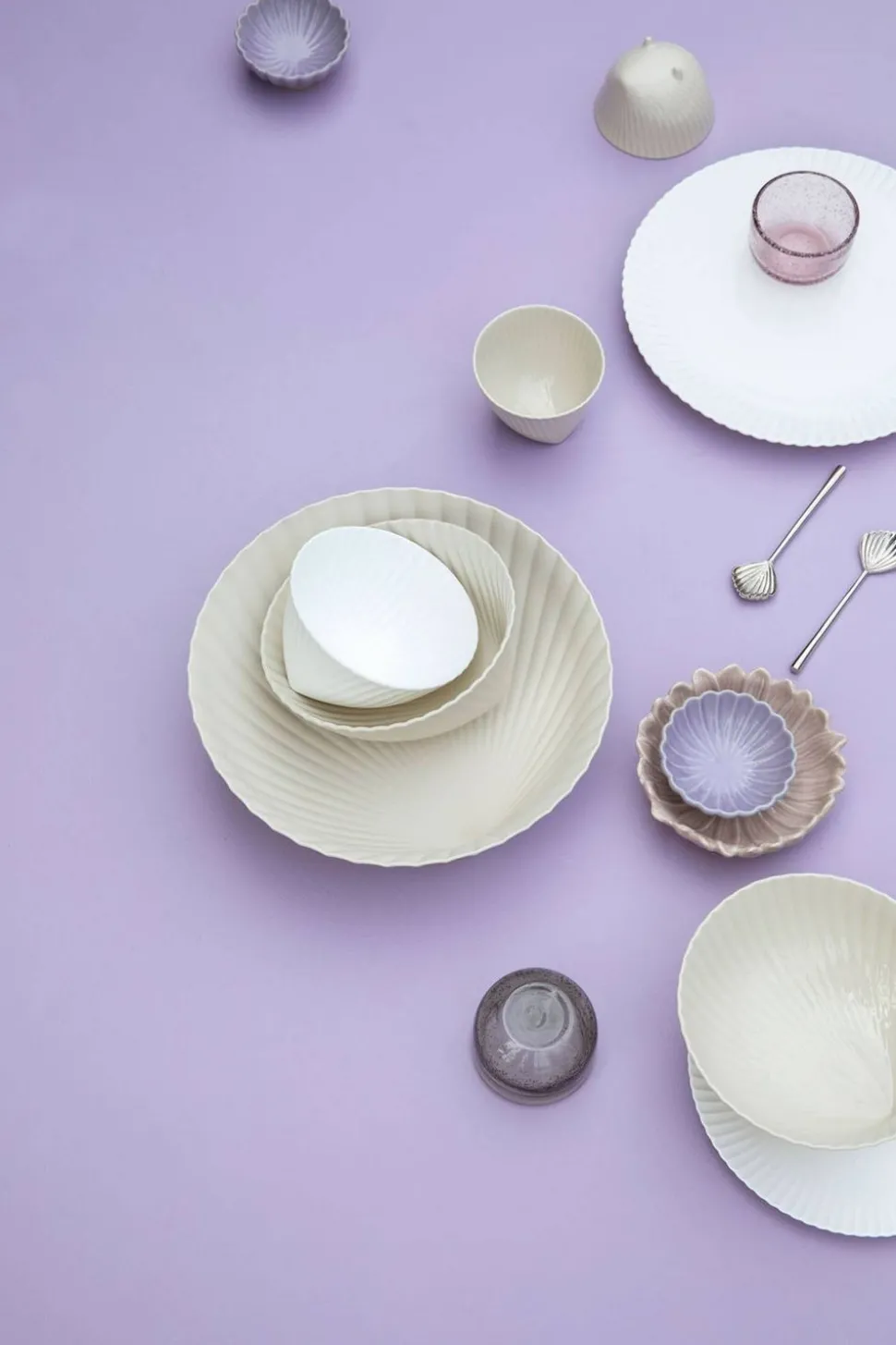 Die Schale Frances M von , entworfen von Studio, ist eine schöne und zeitlose Porzellanschale, die klassische Eleganz mit modernem Design verbindet. Die Schale ist von den Muscheln in der Natur inspiriert, was sich in ihrer zarten, gewellten Form und hellbeigen Farbe widerspiegelt. Die kleinen Füße verleihen ihr einen subtilen, stilvollen Touch, während das dünne Porzellan eine fast durchscheinende Qualität bietet, die eine raffinierte Ästhetik schafft.