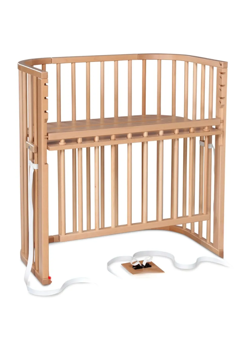 Dieses vielseitige Bett lässt sich dank einer speziellen Gurtbefestigung mühelos am Bett der Eltern anbringen. Die geräumige Liegefläche ist auch ideal für Zwillinge geeignet, was beweist, dass das Boxspring Comfort Plus Beistellbett für Familienfreundlichkeit steht.