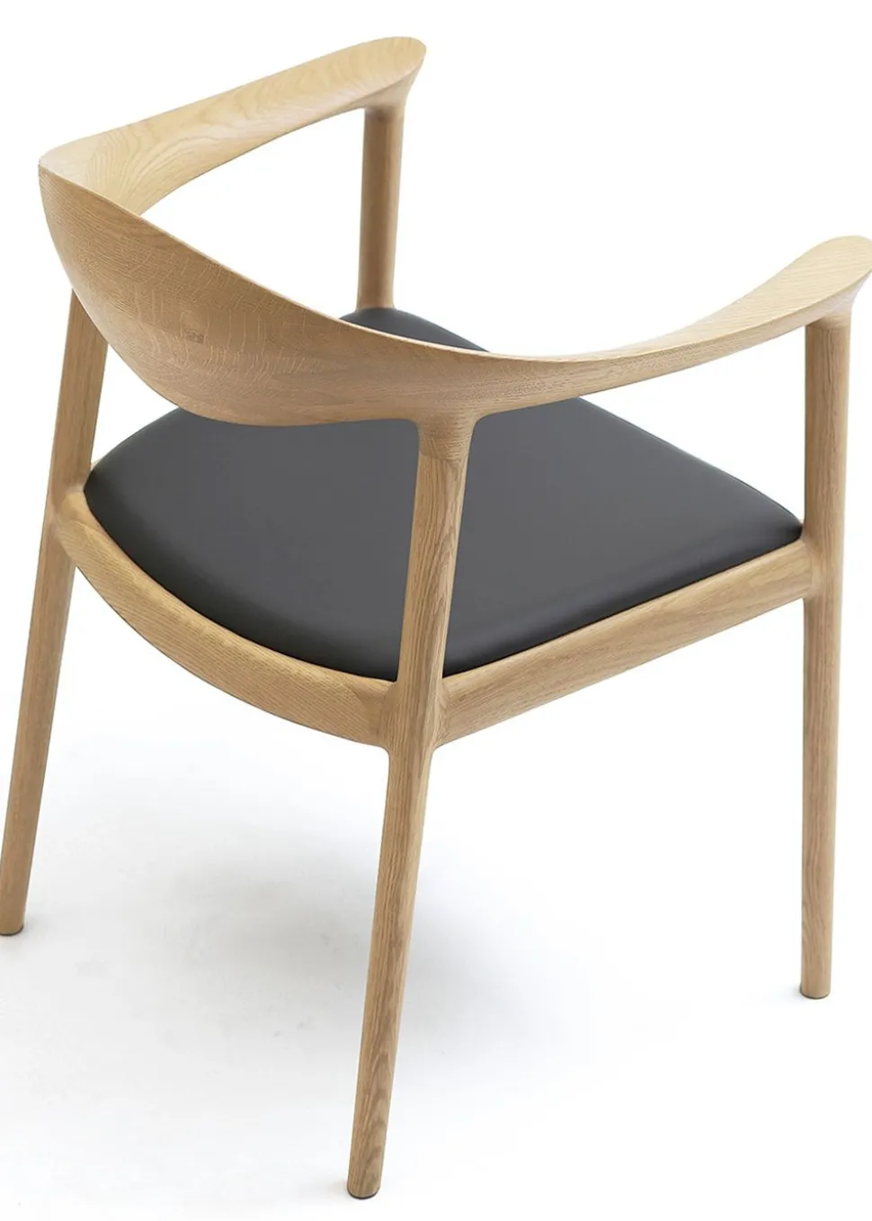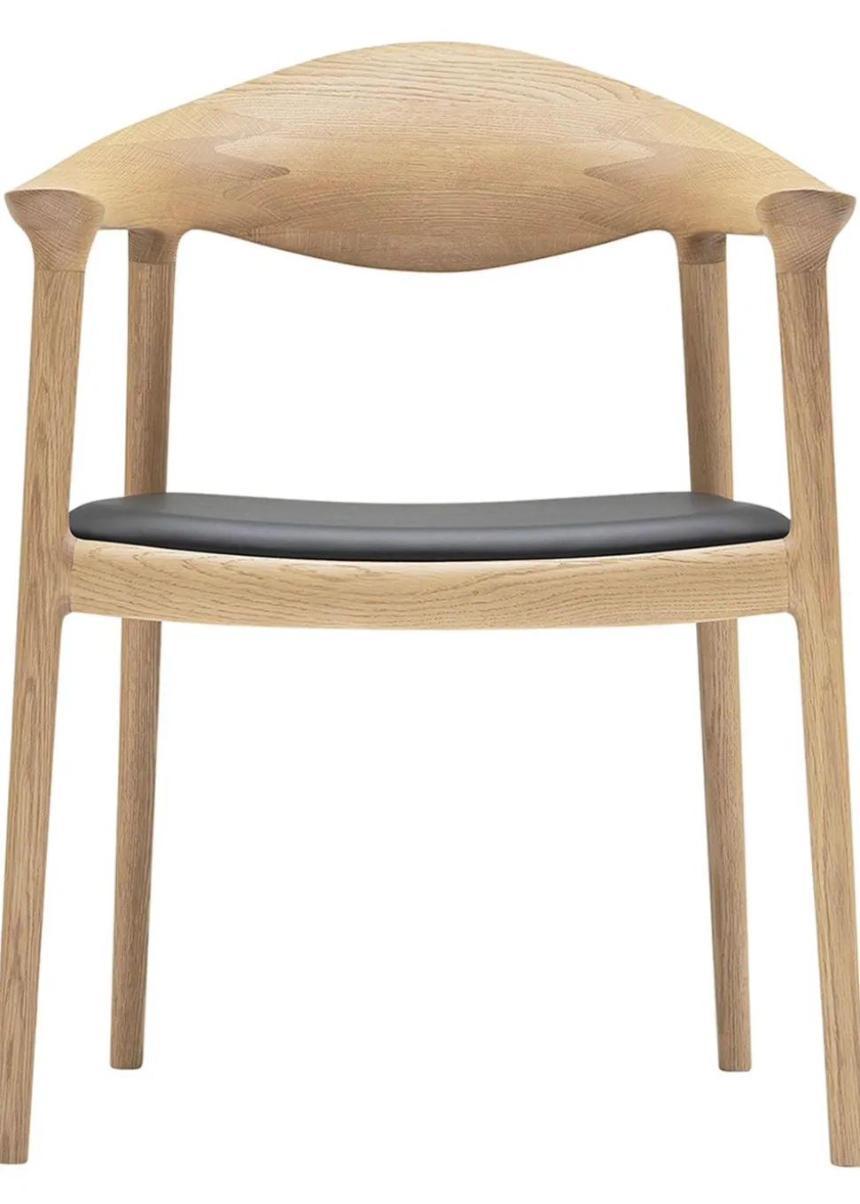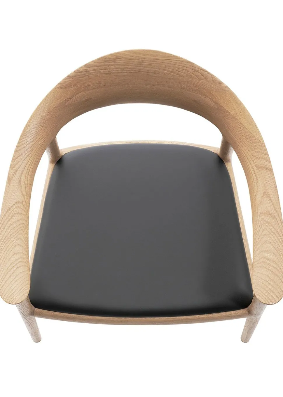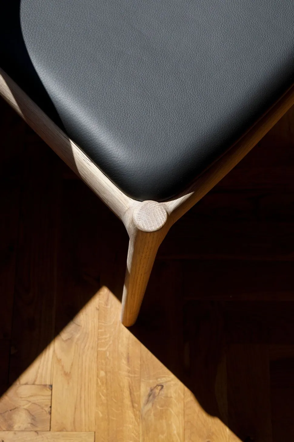- Material: Gestell aus geölter Eiche, Sitzfläche aus schwarzem Standardleder.