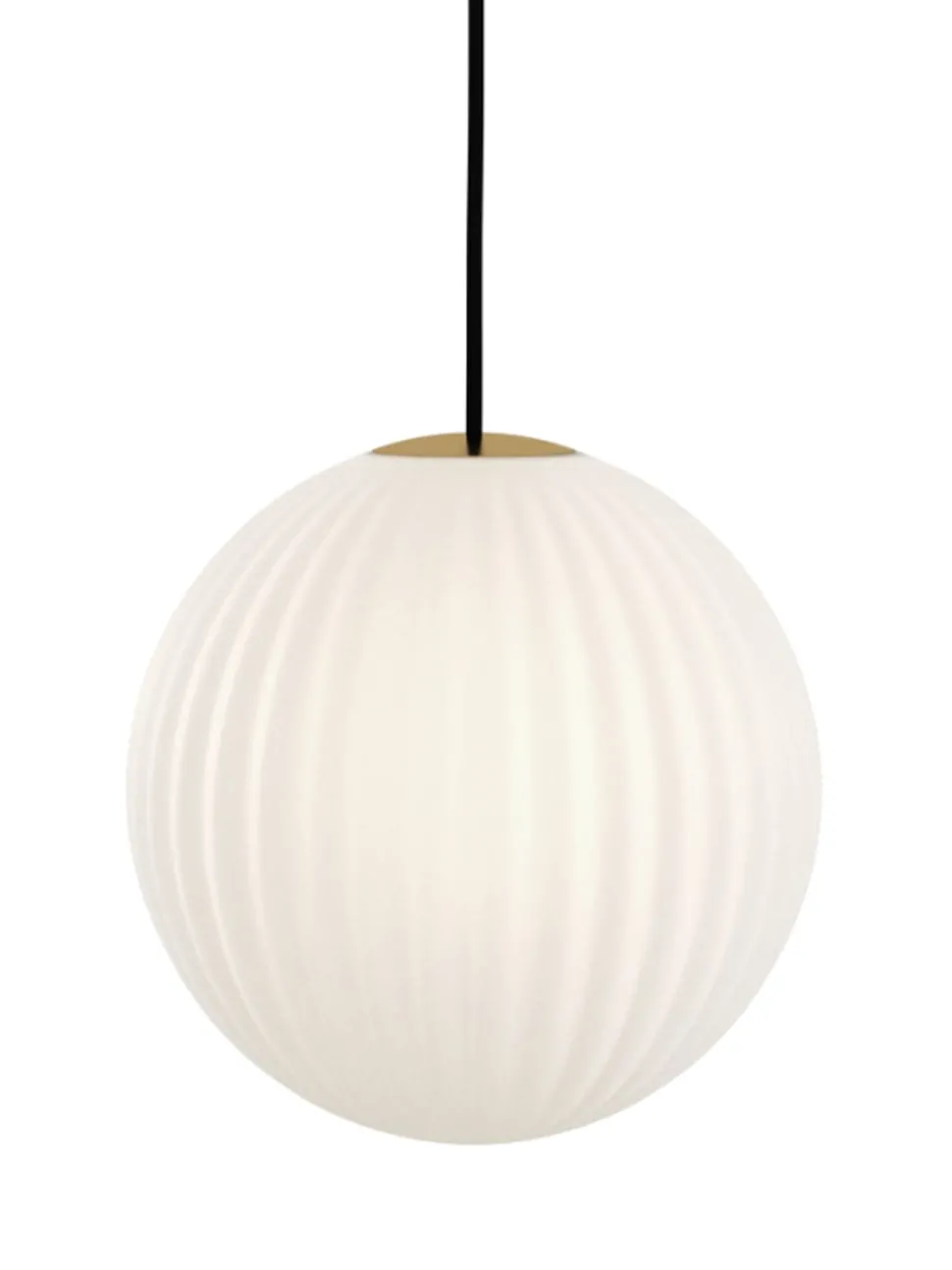Die Bright Modeco Pendelleuchten von verkörpern das Konzept des „Artdeco“ auf klassische und elegante Weise. Der klare, minimalistische Look kombiniert mit eleganten, weichen Rillen und Messingdetails schafft einen schönen Ausdruck. Das weiße Opalglas sorgt für ein weiches, diffuses Licht, das den gesamten Raum erhellt und eine gemütliche Atmosphäre schafft.