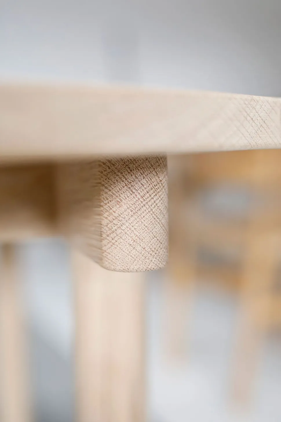 Wir präsentieren den Brú Tisch – Rund von , ein Meisterwerk der Handwerkskunst, entworfen von Designer Børge Mogensen. Dieser exquisite Esstisch strahlt zeitlose Eleganz aus, eine Symphonie aus Massivholz und sorgfältigem Design, mit einem 26 mm geraden Kantenprofil mit abgerundeten Ecken. Aus keilgezinkten Massivholzplatten gefertigt, ist er ein Zeugnis für Präzision und Langlebigkeit.