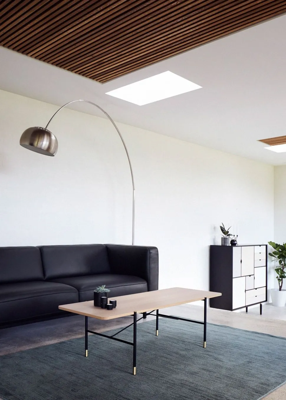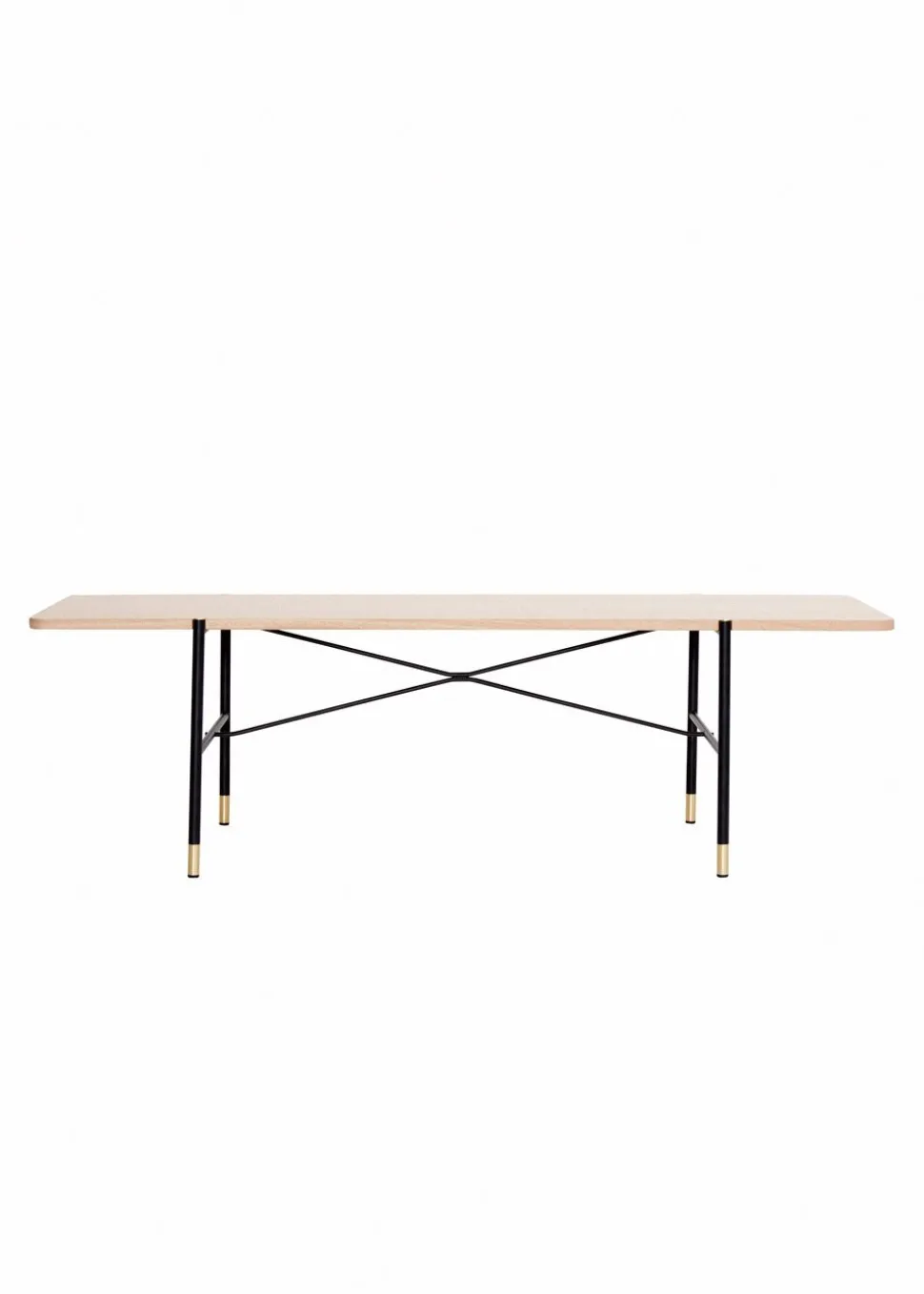C6 von ist ein Paradebeispiel für nordischen Minimalismus und gute dänische Handwerkskunst. Die Tischplatte, die entweder in Eichenfurnier oder in schwarzem Fenix erhältlich ist, kontrastiert zusammen mit dem schwarz pulverbeschichteten Gestell mit den kleinen vergoldeten Messingdetails an den Enden der Tischbeine. Die Einfachheit und Funktionalität des Tisches passt perfekt in ein modernes Zuhause.
