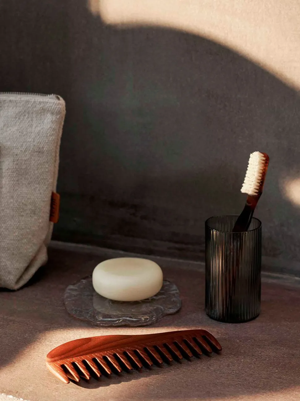 Der schlichte und schöne Cairn Comb von ist die perfekte Kombination aus Stil und Funktionalität. Der Kamm wird aus Eschenholz hergestellt und ist in einer natürlichen dunkelbraunen Farbe gehalten. Mit seinem minimalistischen Design passt er perfekt in jedes Badezimmer oder jede Tasche.