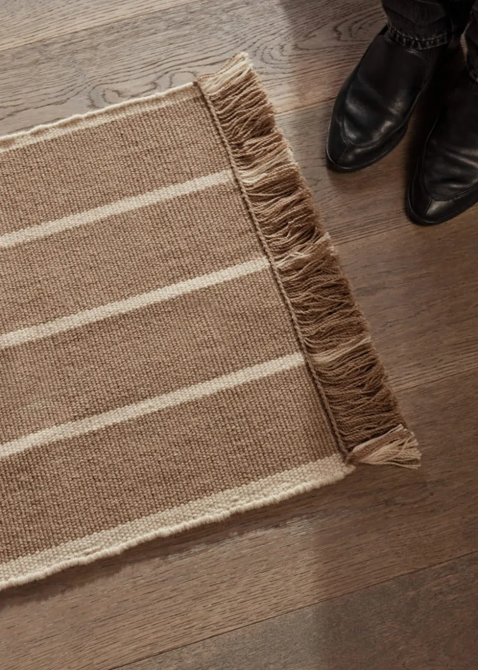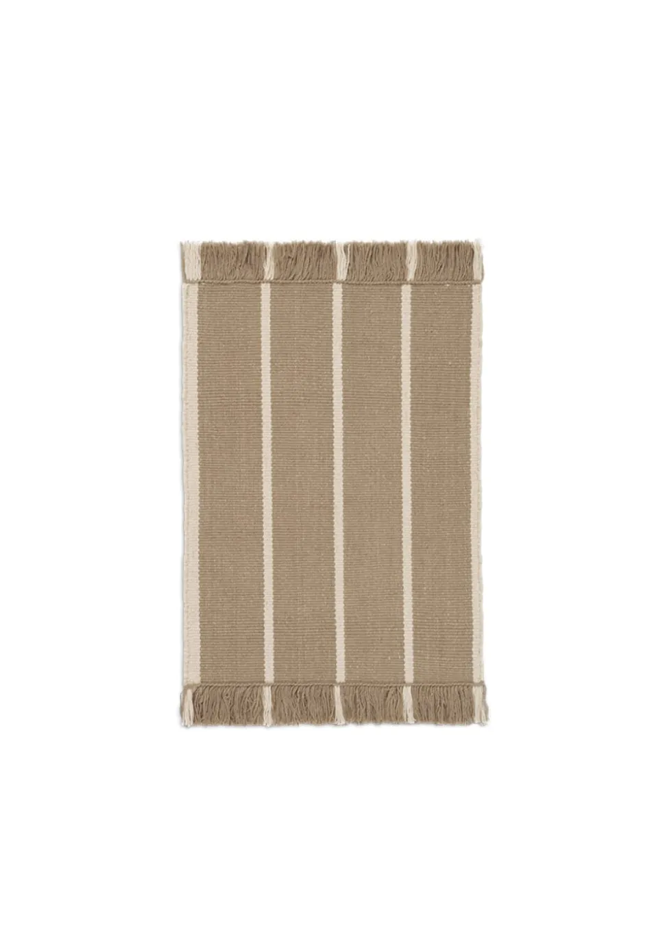 Erleben Sie die sinnliche Verschmelzung von Tradition und Moderne mit der Calm Kelim Mat von . Diese Teppichkollektion ist eine Hommage an das Erbe der Kelim-Handwerkskunst, neu erfunden mit einem modernen Hauch von Farbe und Muster. Jede Matte wird in sorgfältiger Handarbeit hergestellt und das verwendete Wollgarn wird von Hand gefärbt, so dass kein Teppich dem anderen gleicht. Das Weben erfolgt auf einem Punja-Webstuhl, einem manuellen und traditionellen Werkzeug, das zu den ältesten Webtechniken der Menschheit gehört. Das Webgarn der Kelimteppiche hat eine einzigartige, grobe Textur, die den traditionellen Kelimteppich durch ein besonderes haptisches Erlebnis auszeichnet.