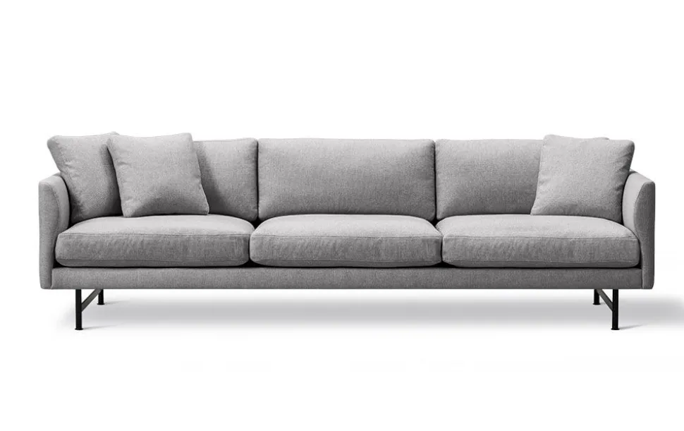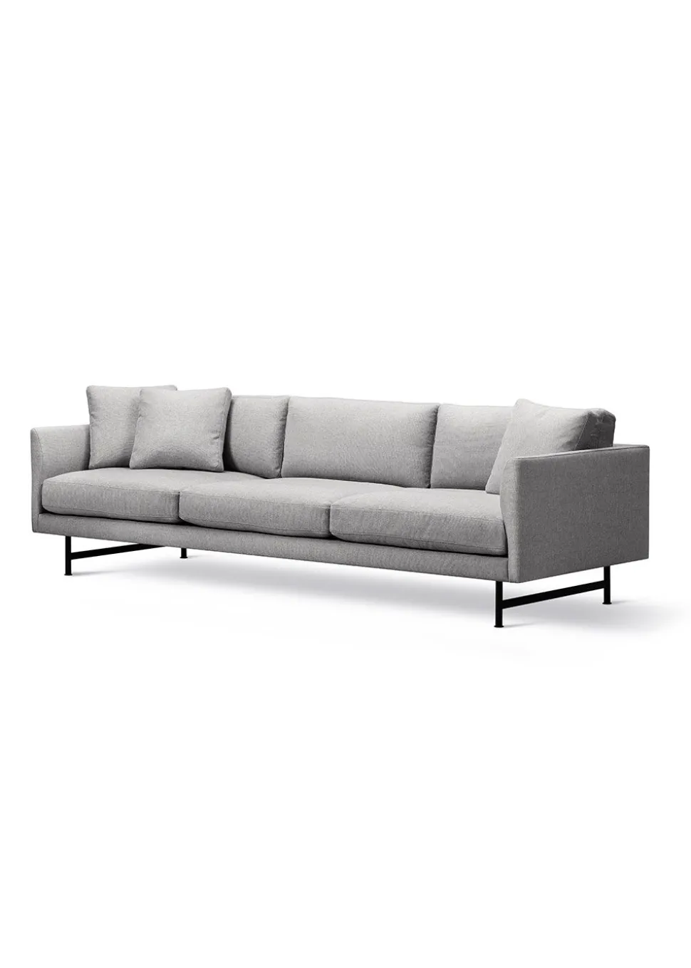 Eine massive Schale formt die Arm- und Rückenlehnen und bildet den Rahmen für den Rest des Möbels. Die Nähte der Polsterung schlängeln sich unsichtbar durch die Möbel und bilden ein subtiles, charakteristisches Detail für die gesamte Calmo“-Serie. Breite Kissen sorgen für den Komfort und das prächtige Lounge-Gefühl, das viele moderne nordische Möbel auszeichnet.