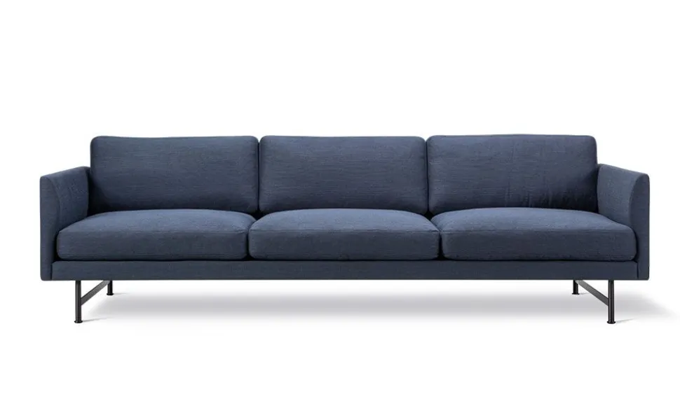 Eine massive Schale formt die Arm- und Rückenlehnen und bildet den Rahmen für den Rest des Möbels. Die Nähte der Polsterung schlängeln sich unsichtbar durch die Möbel und bilden ein subtiles, charakteristisches Detail für die gesamte Calmo“-Serie. Breite Kissen sorgen für den Komfort und das prächtige Lounge-Gefühl, das viele moderne nordische Möbel auszeichnet.