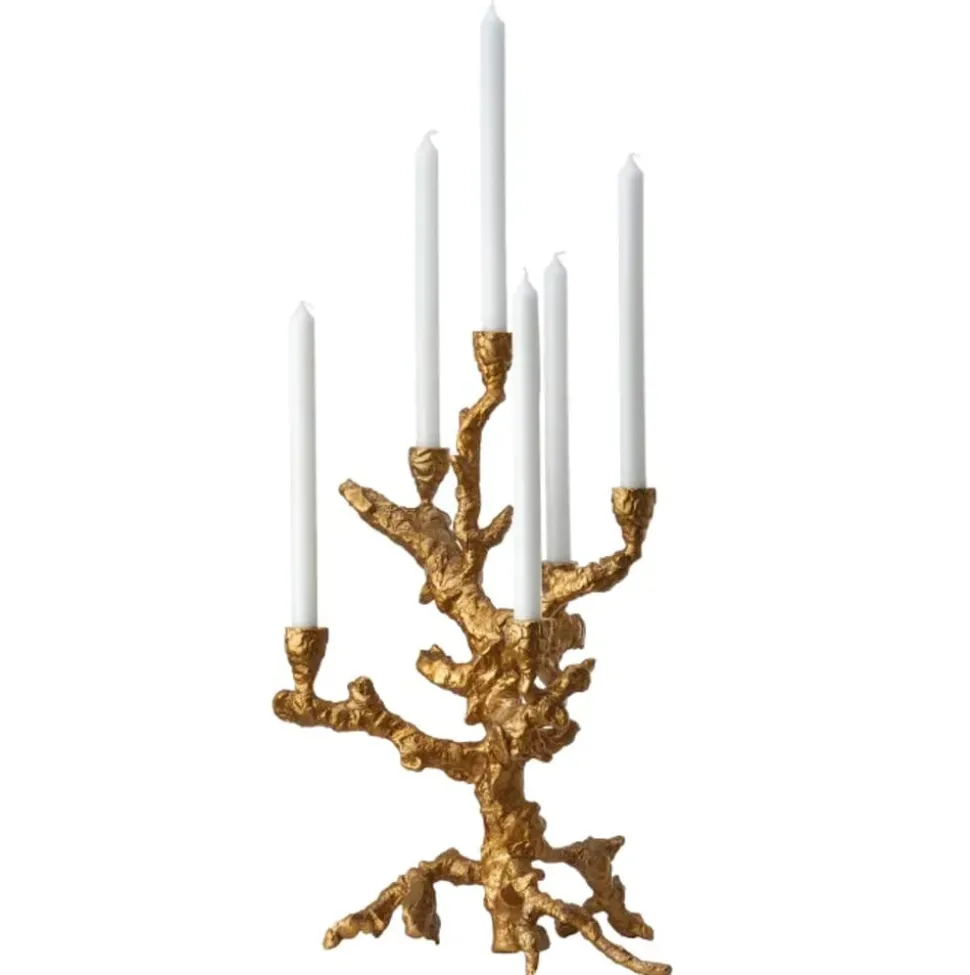 Der Kerzenhalter Apple Tree ist mehr als nur ein dekoratives Objekt, er ist eine multifunktionale Ergänzung für Ihr Zuhause. Er passt sowohl in moderne als auch in klassische Interieurs und kann allein als auffälliges Designelement oder zusammen mit anderen Dekorationsobjekten platziert werden, um ein harmonisches Gleichgewicht zu schaffen. Stellen Sie sich diesen Kerzenhalter auf einem Couchtisch, einem Sideboard oder einem Bücherregal vor, wo seine skulpturale Form und seine glänzende Oberfläche zur Gesamtästhetik des Raumes beitragen. Er ist ideal, um bei Dinnerpartys eine gemütliche Atmosphäre zu schaffen oder als Blickfang in einer ruhigen Ecke Ihrer Wohnung.