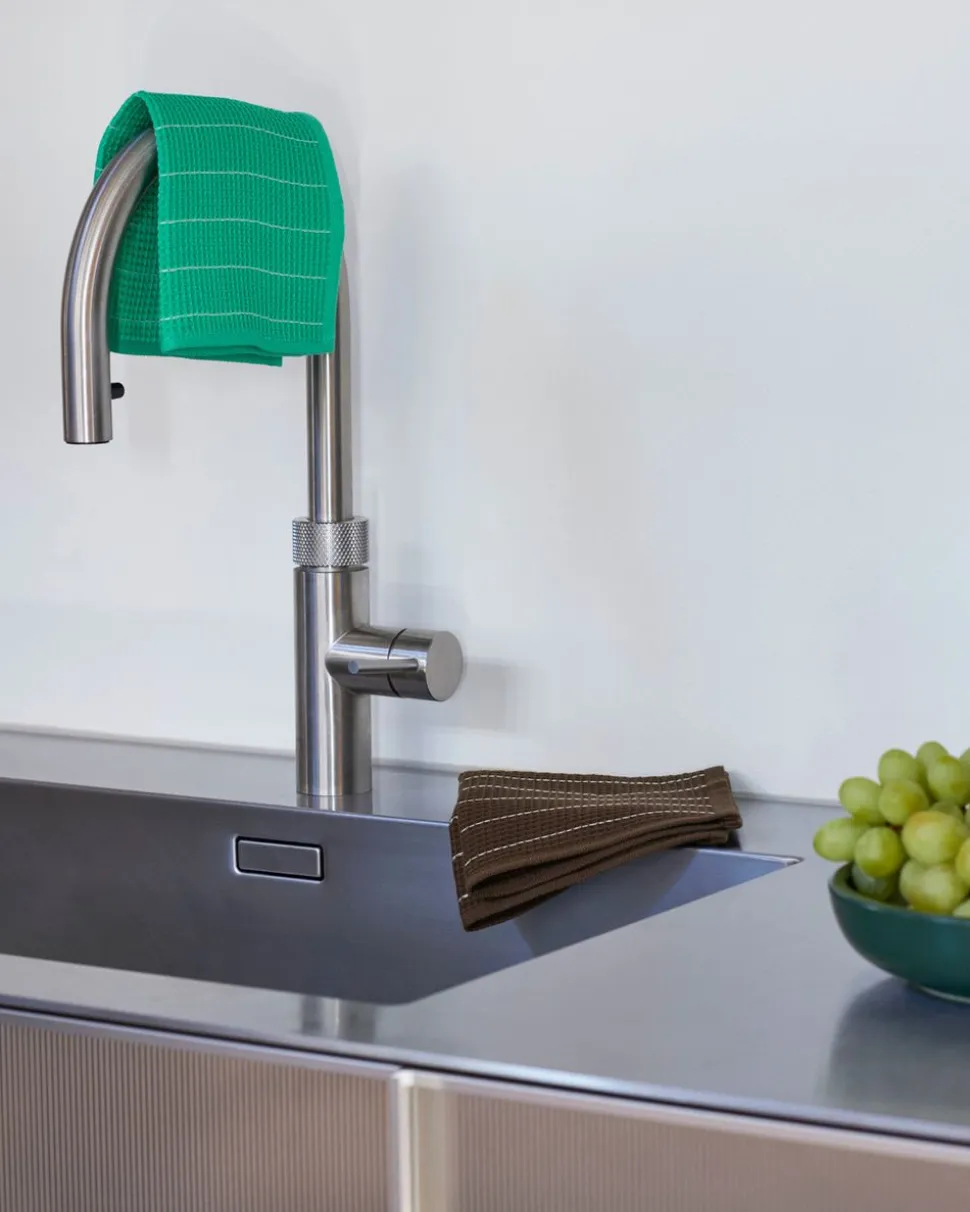 Canteen Dish Cloth, ein charmantes Geschirrtuch, das von sorgfältig entworfen wurde. Das mit einer dreidimensionalen Waffelstruktur bedruckte und mit einem lebhaften Retro-Design verzierte Geschirrtuch ist ein überschwängliches Schmuckstück, das Ihrer Küche einen Hauch von Farbe verleiht. Mit seiner extrem saugfähigen Waffelstruktur aus Baumwolle verbindet es Funktionalität mit einer fröhlichen Ästhetik. Jedes Tuch ist im Zweierpack erhältlich und bietet eine einzigartige Mischung aus Farben und Designs, so dass Sie Ihre Wahl ganz nach Ihrem persönlichen Geschmack und Ihrem Küchenthema treffen können.