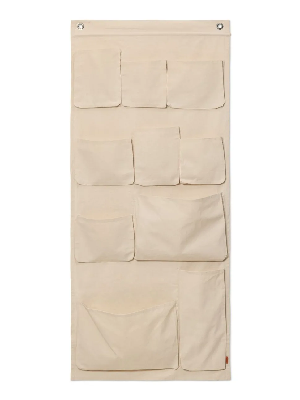 Canvas Wall Pockets ist eine clevere und funktionelle Aufbewahrungslösung, die mit ihrem neutralen Design sowohl für das Kinderzimmer als auch für den Rest des Hauses geeignet ist. Dank der verschiedenen Taschengrößen finden die Lieblingsspielzeuge Ihrer Kinder, praktische Dinge für den Wickeltisch oder andere notwendige Dinge problemlos Platz. Die Canvas Wall Pockets lassen sich mit den beiden Metallösen leicht an der Wand befestigen, entweder mit Nägeln oder mit einer haltbaren Lederschnur.