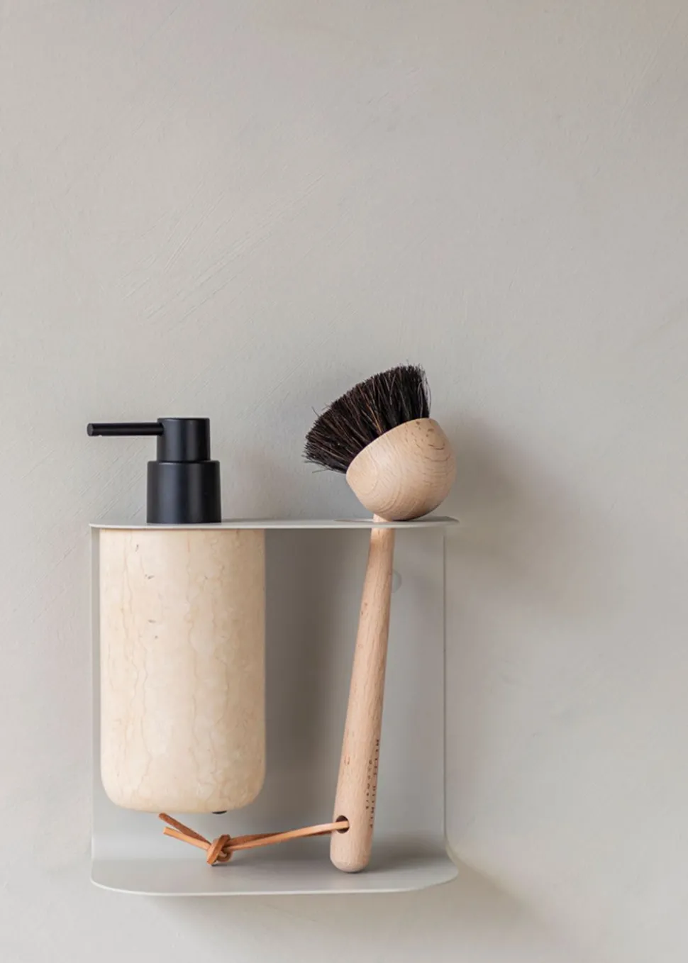 Die Double Wandhalterung ist eine klassische Wandhalterung mit guten funktionalen Lösungen für die Aufbewahrung von z.B. Seifenspendern oder Spülbürsten. Sein Design hat aufgrund seines Materials einen industriellen Look, der Ihrem Zuhause einen modernen Look verleiht.