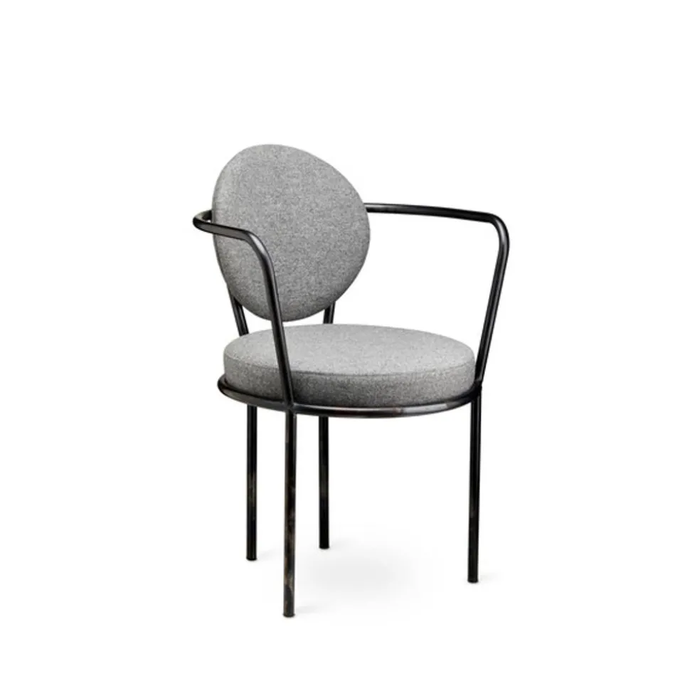 Die runde Rückenlehne des Stuhls sorgt für ein umhüllendes und bequemes Sitzerlebnis, das mit den einzigartigen Holzbeinen mit Markenzeichen verbunden ist. Der Stuhl lädt daher zu langen Abendessen im Esszimmer mit Familie und Freunden ein, wo man den ganzen Abend über bequem sitzen kann.