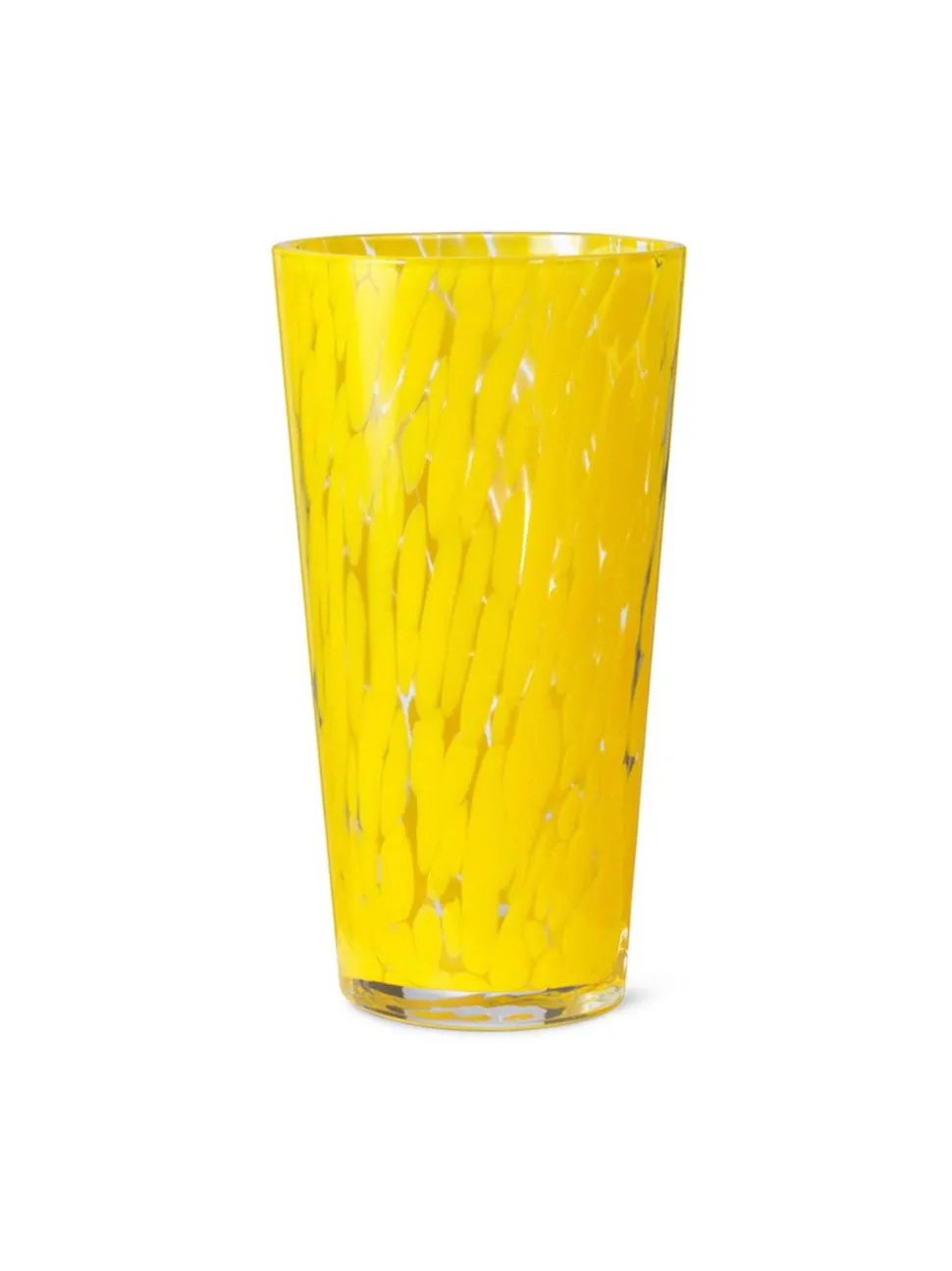 Die Casca Vase von ist eine verspielte, farbenfrohe Vase, die jedes Zuhause schmückt. Das mundgeblasene Glas hat eine asymmetrische, organische Form, und das unregelmäßige Muster aus monochromen Flecken ist bei jeder Vase einzigartig. Kombinieren Sie sie mit einem Blumenstrauß, oder lassen Sie sie für sich selbst im Raum erstrahlen.