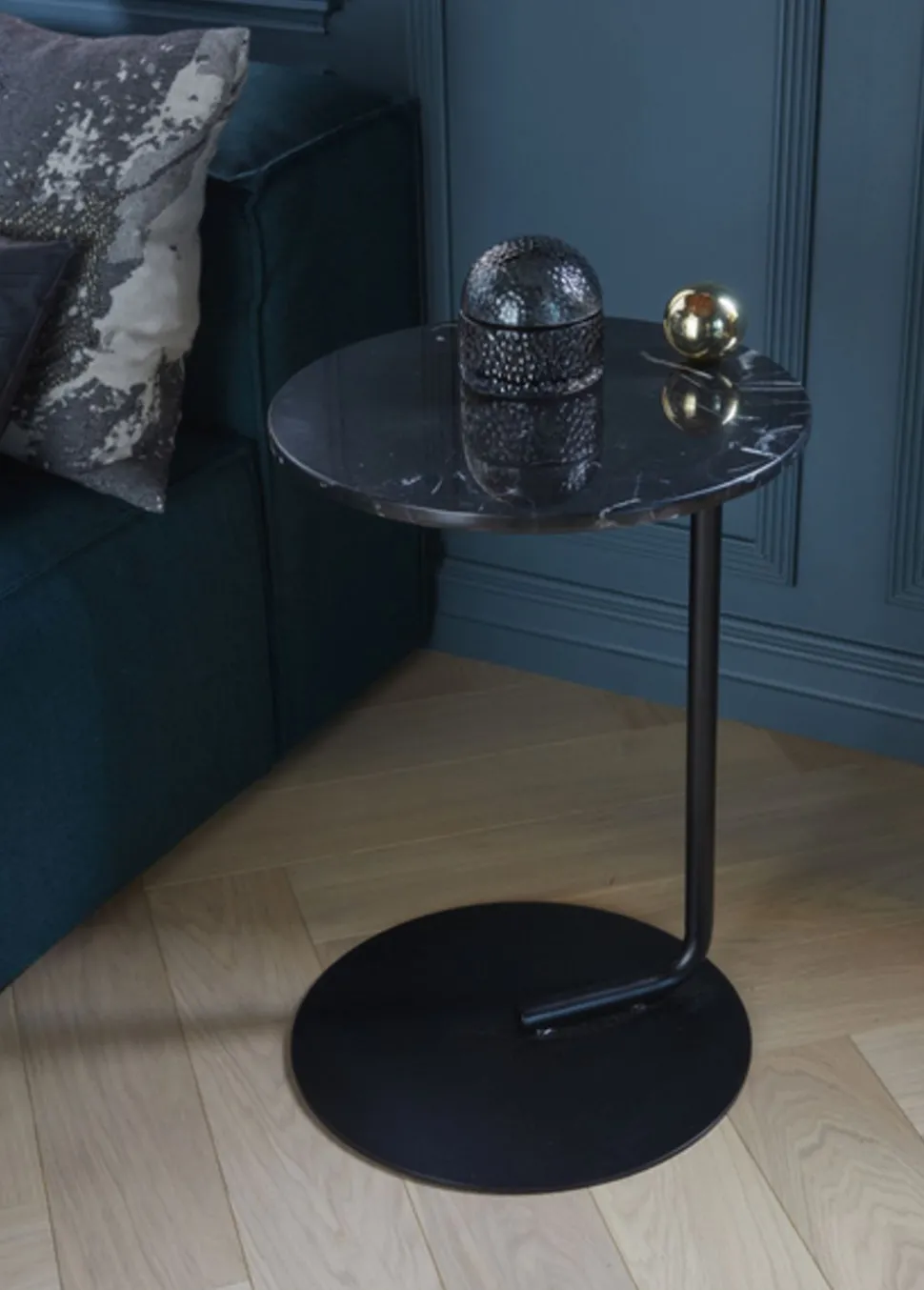 Schöner Beistelltisch, entworfen von Henrik Johannes Drecker. Auch dies ist ein weiterer Artikel aus der beliebten Serie „Castellum“. Der Tisch hat eine wunderschöne und einzigartige Goldkugel auf der Tischplatte, die ihn perfekt in die übrige Kollektion einfügt, die ursprünglich von der majestätischen dänischen Grundtvig-Kirche inspiriert wurde. Dekorieren Sie Ihr Zuhause mit diesem schönen Tisch. Sie können den Tisch als kleinen Couchtisch, neben Ihrem Sessel oder als schönen Nachttisch verwenden.