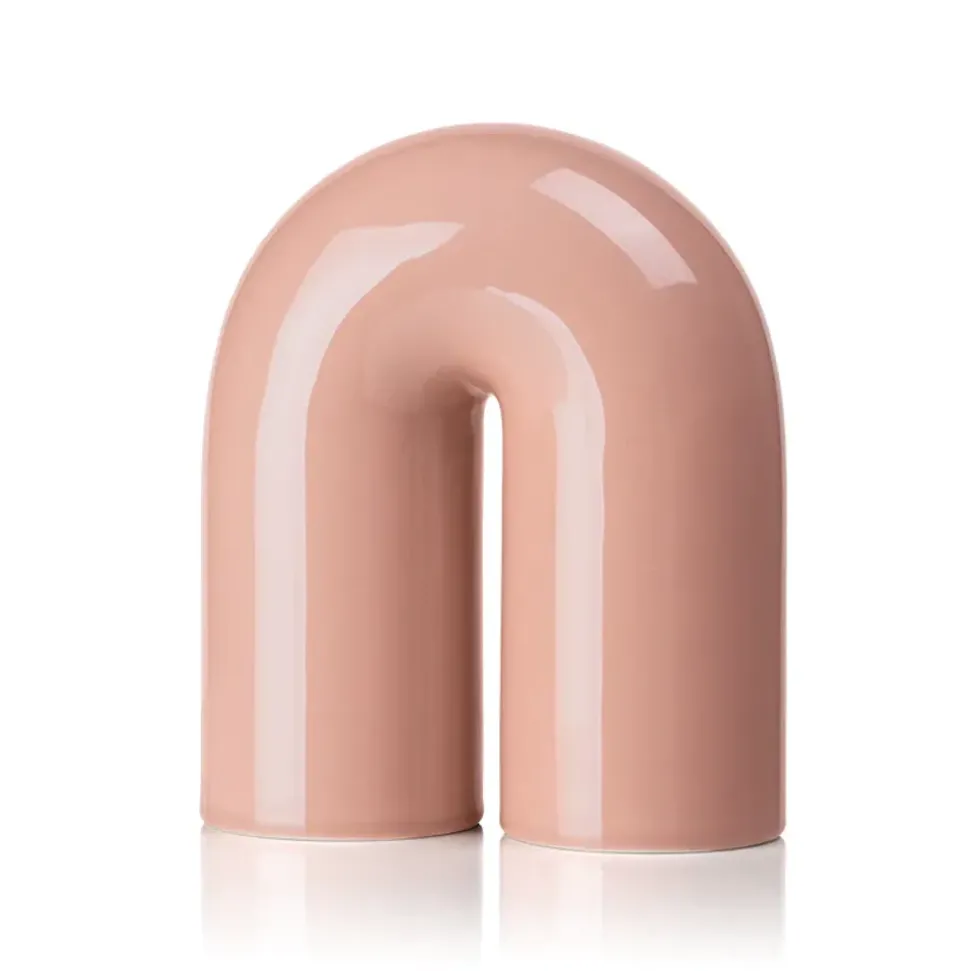 Dekorativer Keramikbogen, inspiriert von der römischen Architektur. Die glatte und glänzende Glasur in Verbindung mit der runden, geschwungenen Form macht sie elegant und faszinierend zum Stehen. Verwenden Sie es zum Beispiel als Buchstütze oder stellen Sie es als eigenständiges Kunstwerk aus.