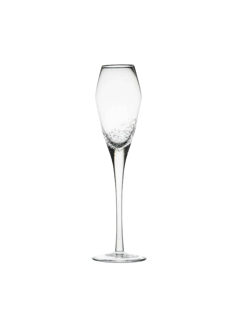 Das Champagnerglas Bubbles von , entworfen von Studio, ist eine schöne Hommage an die kleinen Freuden des Lebens. Das Glas hat eine verspielte und doch raffinierte Form, bei der feine Bläschen in der Struktur selbst ein Gefühl von Leichtigkeit und Optimismus vermitteln. Das mundgeblasene Glas ist elegant mit einer subtilen Asymmetrie, die jedes Stück einzigartig macht – wie kleine Kunstwerke für den Tisch. Ein durchdachtes Gleichgewicht zwischen Funktion und Poesie, das die Sinne anregt.