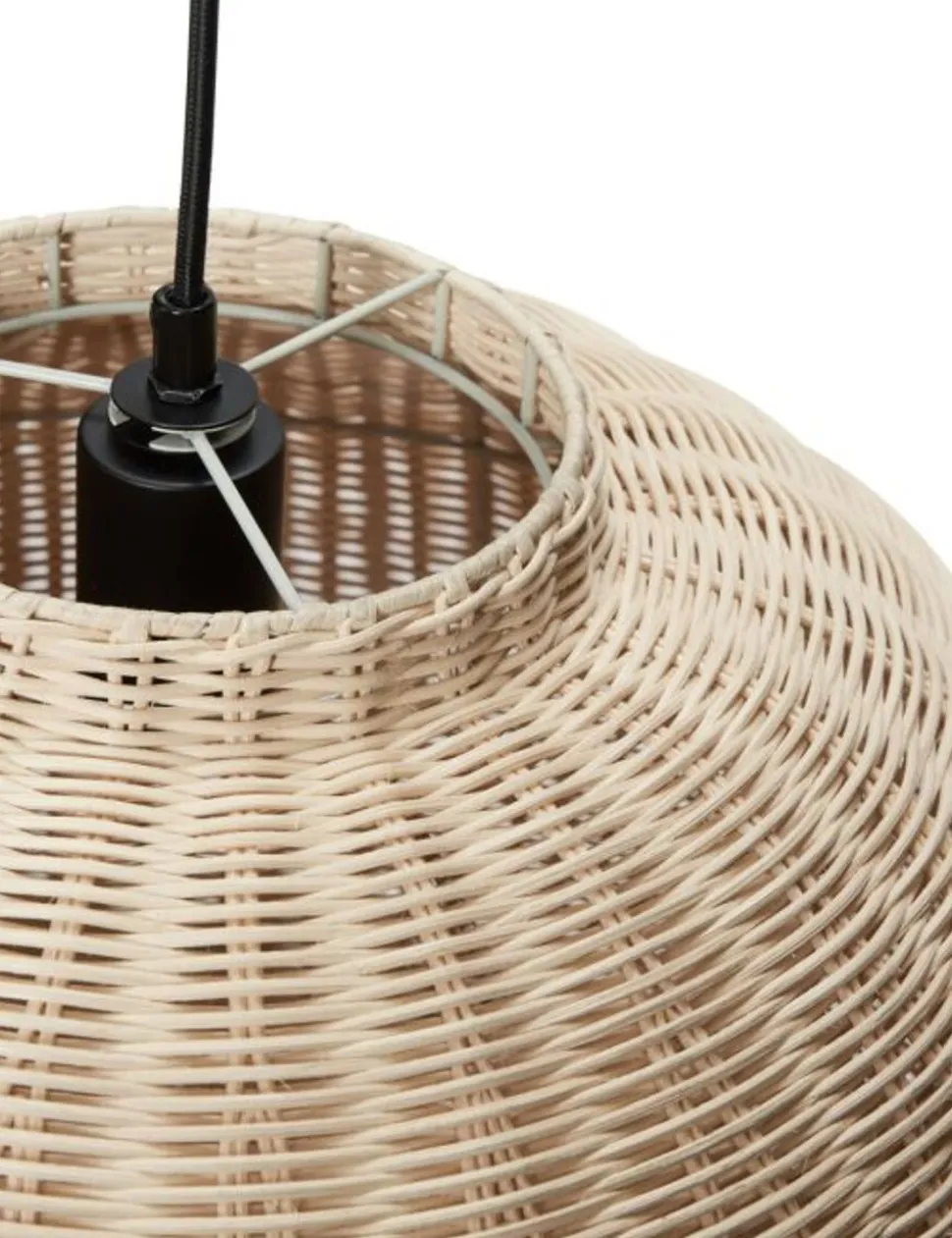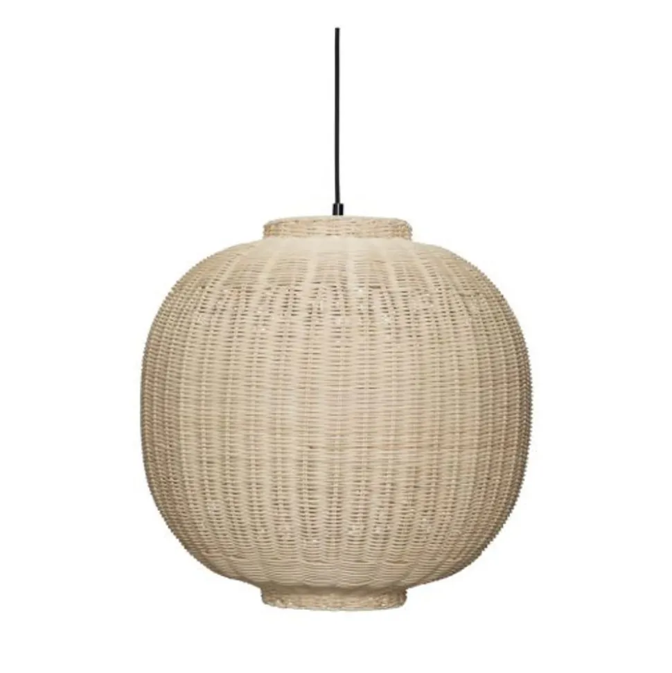 Schöne Lampe von . Hängen Sie es alleine auf oder hängen Sie verschiedene Formen in unterschiedlichen Längen zusammen. Die Lampe ist in vier verschiedenen verspielten Formen gestaltet und wird aus Rattan hergestellt.