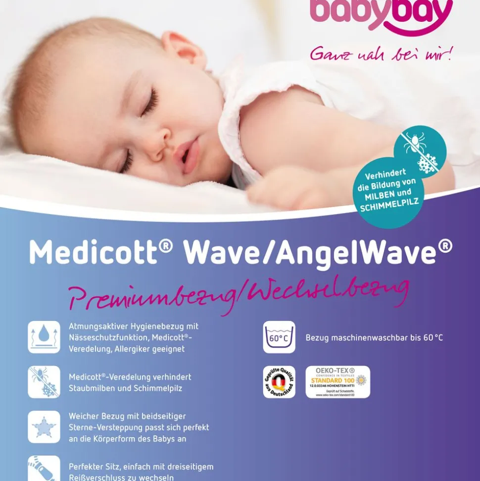Der ‚babybay prime Wickelbezug MediTex® extra airy‘ von passt perfekt zu den Modellen Babybettumbau Maxi und Boxspring. Dieser hochwertige Bezug verbindet Weichheit mit Funktionalität und sorgt für einen komfortablen und hygienischen Schlafplatz für Ihr Kind. Durch die innovative MediTex®-Technologie verhindert der Bezug effektiv das Eindringen von Feuchtigkeit und bleibt dabei atmungsaktiv, so dass ein optimales Schlafklima entsteht.