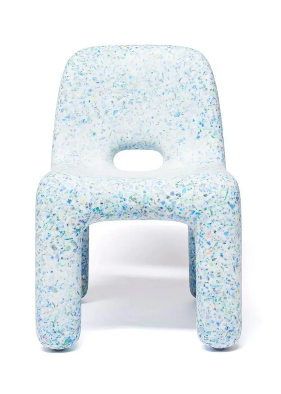Die Kinderstühle werden aus recyceltem Kunststoff hergestellt, was ihnen ihr unverwechselbares Aussehen verleiht. Durch das spezielle Herstellungsverfahren ist jedes Produkt ein Unikat. Durch die glatte Oberfläche des Materials ist es leicht zu reinigen und zu pflegen. Der Stuhl kann sowohl im Innen- als auch im Außenbereich verwendet werden.