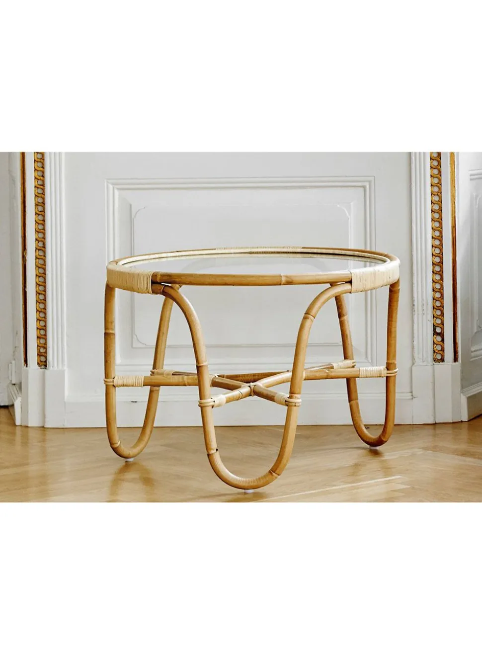 Der Charlottenborg Beistelltisch wurde von entworfen. Der Beistelltisch ist aus Rattan, das eine schöne Farbe hat, die dem Haus Seele und Wärme verleiht. Die Tischplatte ist aus Glas und gibt dem Tisch eine schöne Einheit. Die Serie Charlottenborg besteht aus einem Sessel, einem 2-Sitzer-Sofa und einem Beistelltisch.