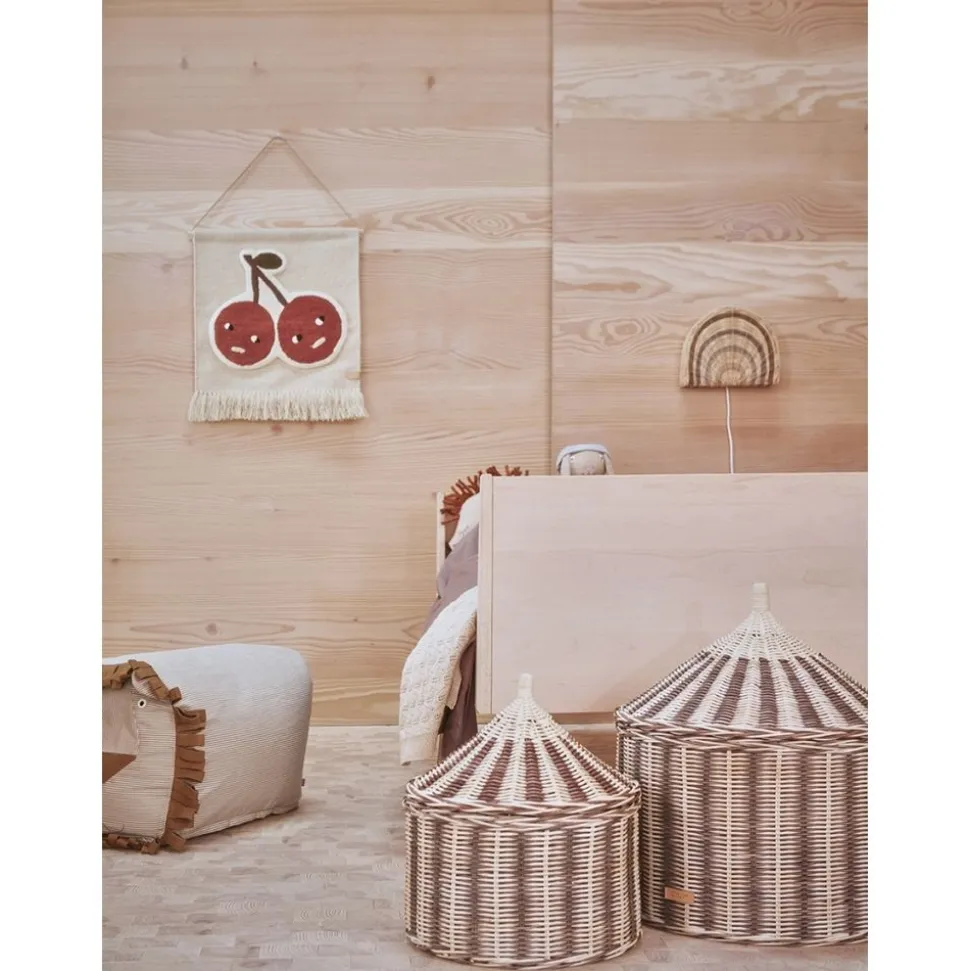 Der niedliche Wandbehang Kirsche von ist die perfekte Dekoration für die Wände des Kinderzimmers. Die Decke wird über einen Stock mit einer Lederschnur zum Aufhängen gefaltet. Mit ihren niedlichen Gesichtern und frischen Farben sorgen die beiden Kirschen für einen verspielten Look im Zimmer Ihres Kindes.