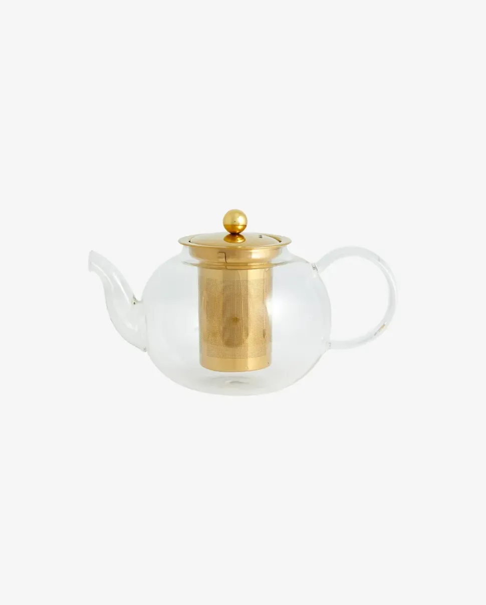 Schöne und praktische Teekanne mit Filter. Die Teekanne ist aus Borosilikatglas hergestellt, einer leichten, aber sehr stabilen Glasart, die hohen Temperaturen standhalten kann.