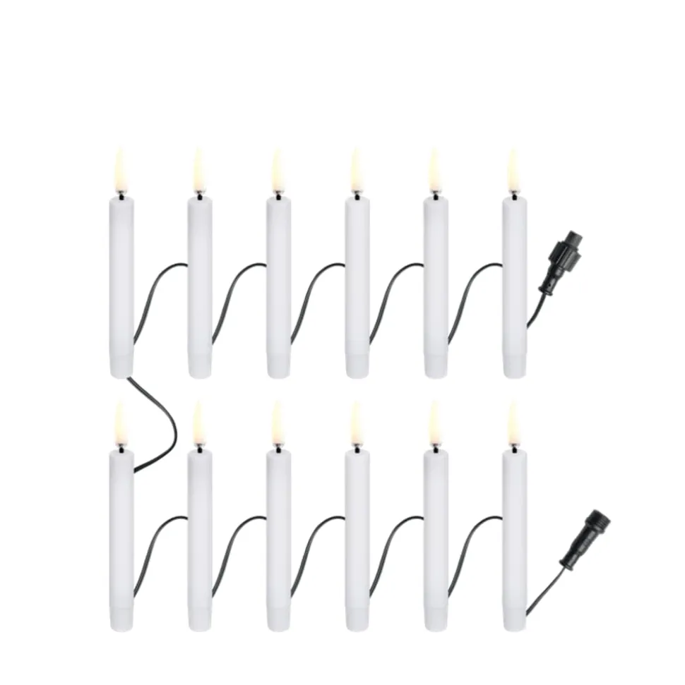 Die Christmas String Candles Extension von ist eine elegante Erweiterung der beliebten Weihnachtslichterkette, die mit viel Liebe zum Detail und Funktionalität gestaltet wurde. Jede LED-Kerze imitiert mit ihrem warmen Schein und der handgefertigten Oberfläche echtes Kerzenlicht, ohne dabei Kompromisse bei der Sicherheit oder Qualität einzugehen. Die Lichterkette ist aus robustem ABS-Kunststoff gefertigt und so konzipiert, dass sie den wechselnden Witterungsbedingungen der Saison standhält. Sie ist sowohl raffiniert als auch langlebig.