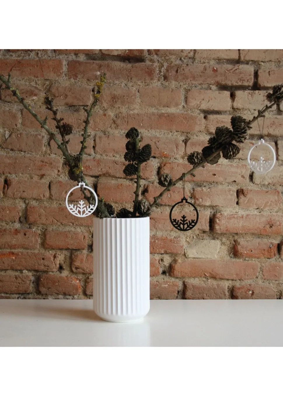 Schöner Weihnachtsball mit Schneeflockendekoration von Felius Design, perfekt für den Weihnachtsbaum oder Ihre Lieblings-Würfelbühne, für eine weihnachtliche Note. Das Schild ist aus gegossenem Acryl mit einer schönen Seidenkordel zur Befestigung.