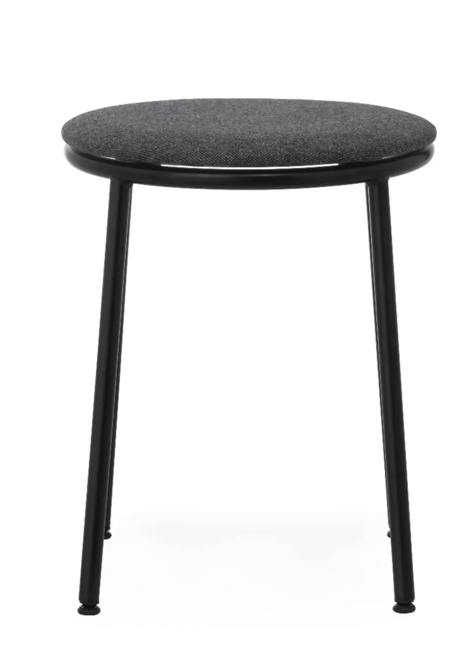 Circa ist ein minimalistischer und eleganter Barhocker, bestehend aus einem Stahlrohrgestell und einem Sitz aus Eichenfurnier, Aluminium oder Polsterung. Die Polsterung ist wahlweise in Textil oder Leder erhältlich.