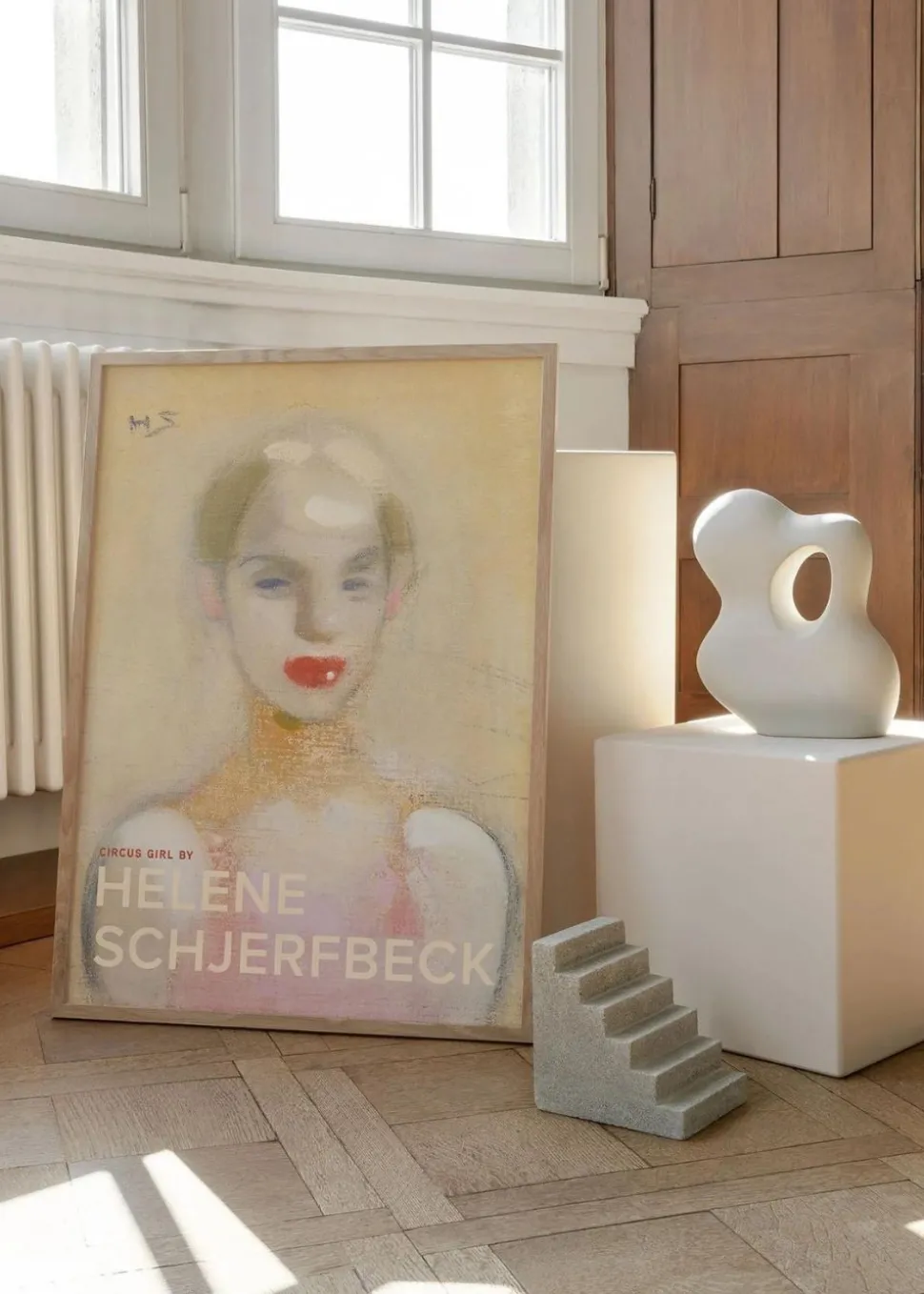 Circus Girl wurde von der Künstlerin Helene Schjerfbeck entworfen. Das Plakat ist ein schönes und farbenfrohes Plakat mit einer Illustration einer Zirkusartistin. Das Design ist retro und zeigt ein junges Mädchen in einem bunten Kostüm. Die schönen warmen Farbtöne schaffen ein Gefühl der Gemütlichkeit und sind daher ideal für jedes Zuhause.