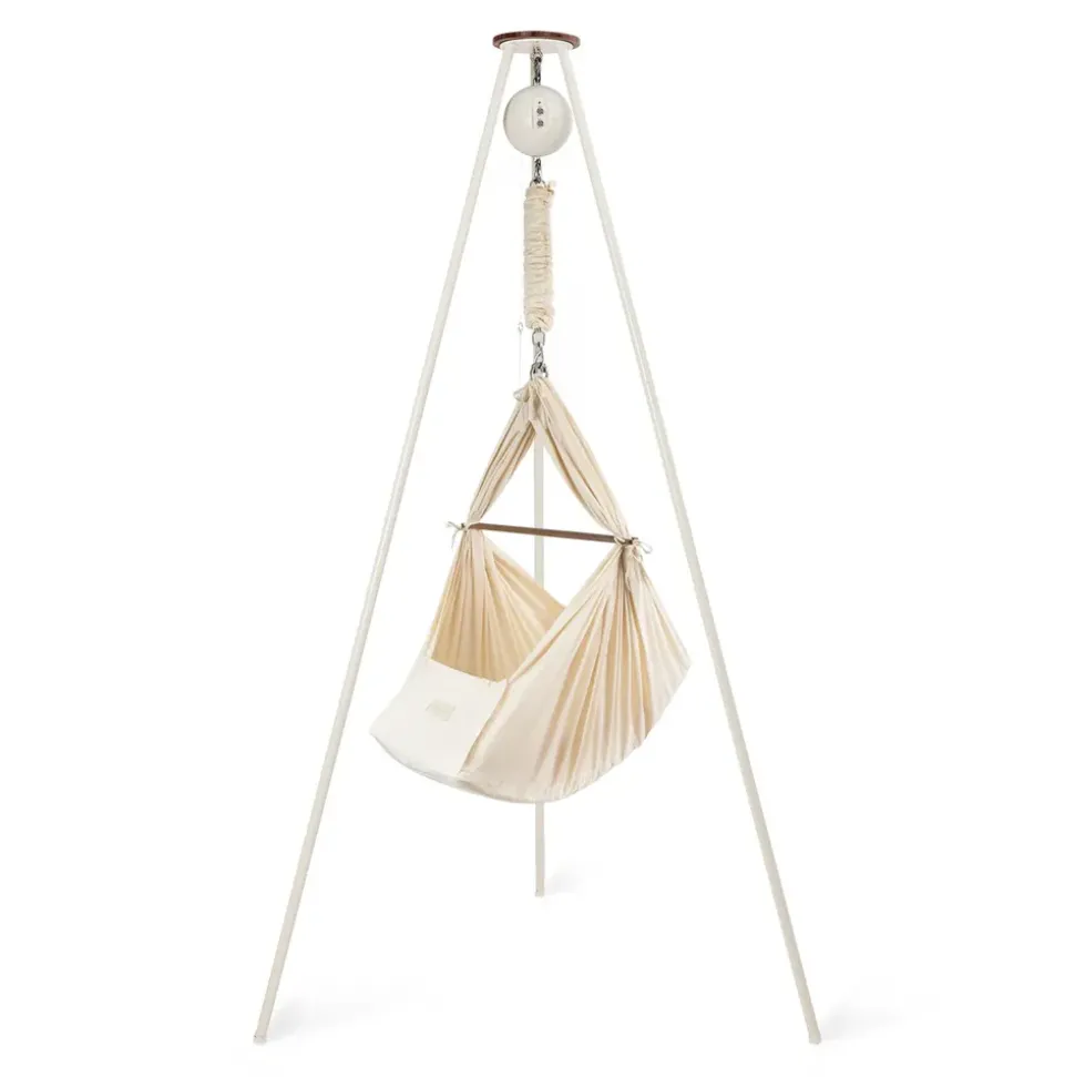 Die Classic Bundle – Baby Hammock von ist eine schöne Kombination aus skandinavischer Eleganz und praktischem Design. Die GOTS-zertifizierte Bio-Schaukelwiege in einem neutralen Farbton passt wunderbar in jedes Zuhause. Sie haben die Wahl zwischen Motor Original oder Motor Connect, beide bekannt als der leiseste Wiegenmotor auf dem Markt, und dem soliden Standfuß 2.0 für Stabilität und Sicherheit für Ihr Baby.