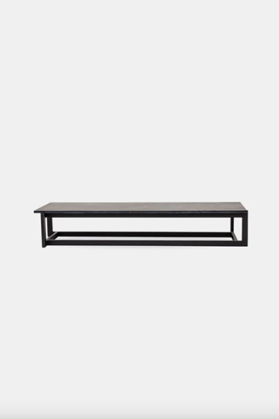 Coffee Table ist ein niedriger moderner Couchtisch, Couchtisch oder Bank. Der Tisch wurde von entworfen und besteht aus Holz und Marmor, was dem Tisch einen einzigartigen Ausdruck verleiht. Der Couchtisch ist in verschiedenen Holzarten und Marmorfarben erhältlich.