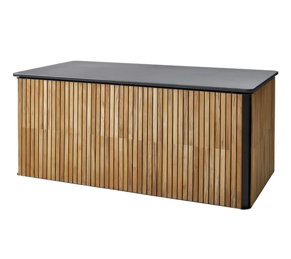 Die Combine Cushion Box ist ein Entwurf von . Die Kissenbox ist aus lavagrauem pulverbeschichtetem Aluminium mit Teakholzlatten gefertigt. Sie ist für den Einsatz im Freien vorgesehen. Die Kissenbox ist perfekt für die Aufbewahrung von Kissen, wenn sie nicht in Gebrauch sind. Durch das einzigartige Design passt die Kissenbox in die meisten Outdoor-Loungebereiche. Wenn Sie das schöne goldbraune Teakholz bewahren möchten, können Sie die Teak-Pflegeprodukte verwenden.