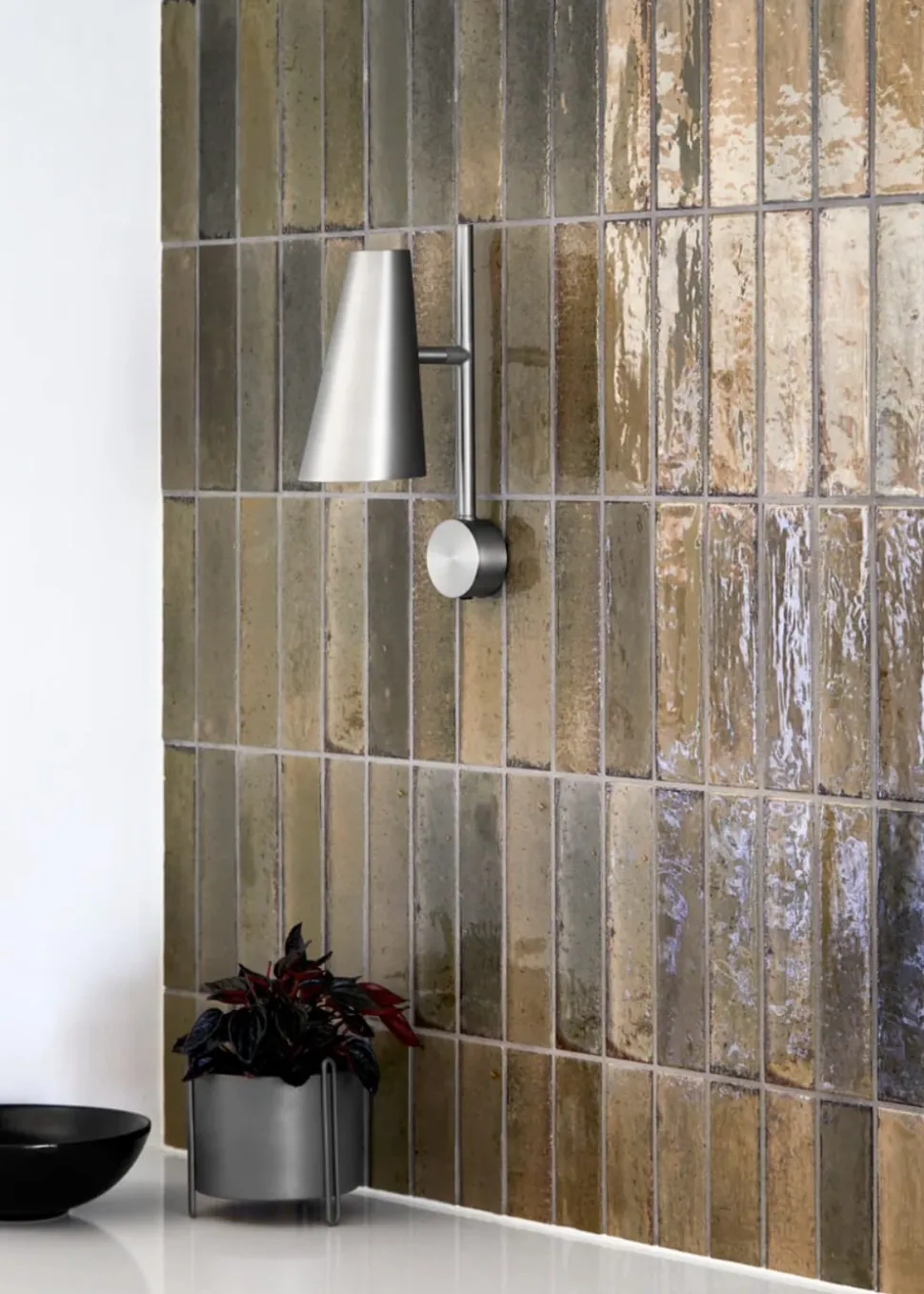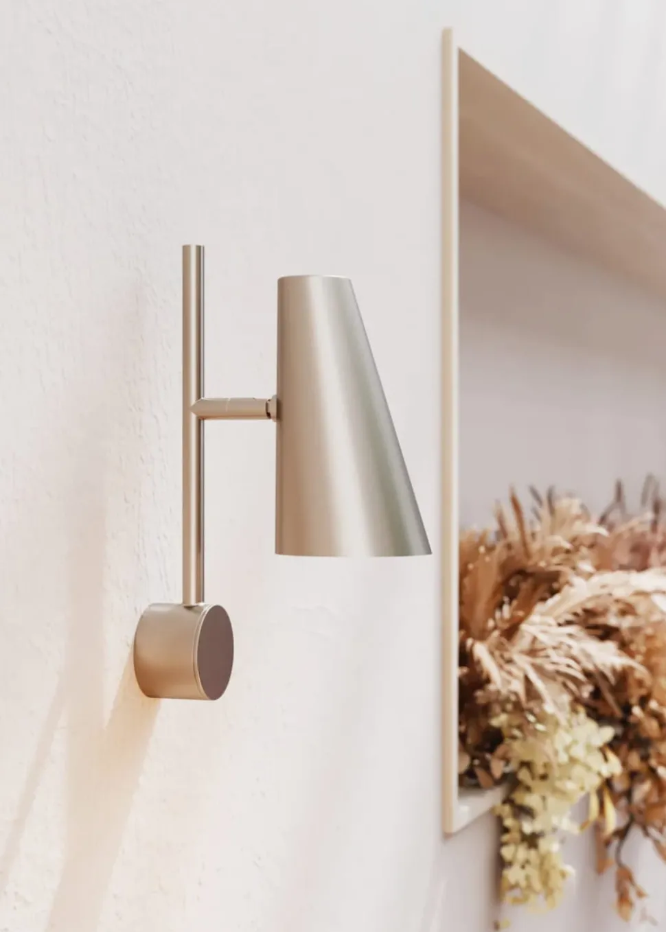 Die Wandleuchte Cono erinnert an einen fokussierten Scheinwerfer auf einer Bühne. Diese klassische geometrische Schattenform spiegelt sich im Namen Cono wider, der von der mathematischen Form Conoid inspiriert ist.