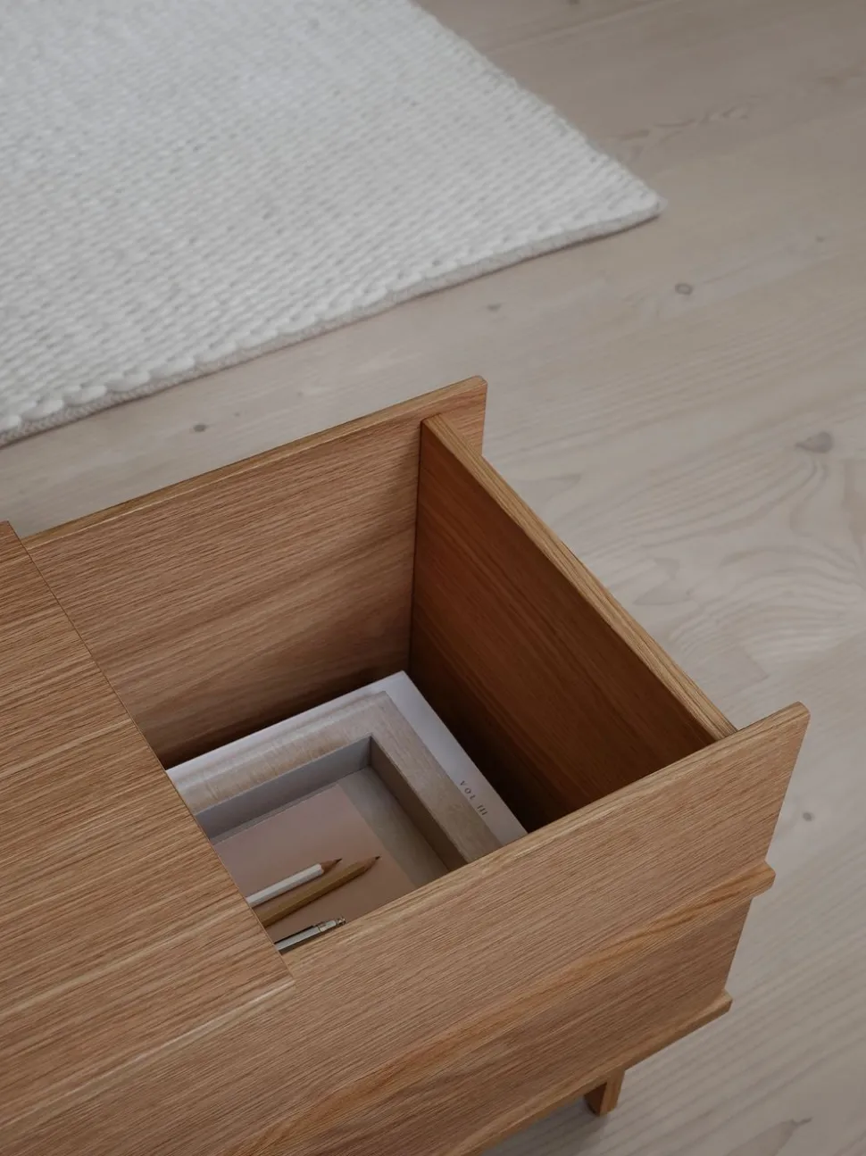 Schöne und schlichte Eichenholzbank von der dänischen Designmarke .