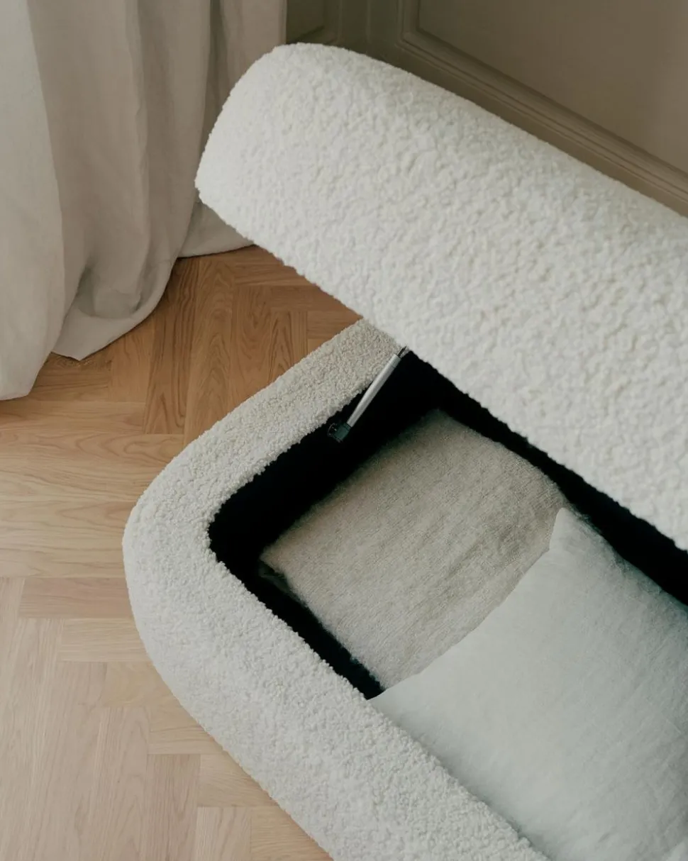 Der Covent Pouf lässt sich leicht in jede Inneneinrichtung integrieren. Verwenden Sie ihn im Wohnzimmer als flexible Erweiterung des Sofas oder stellen Sie ihn in den Flur als praktische Ablagefläche. Das vielseitige Design und die versteckten Ablagefächer machen den Pouf ideal für die Aufbewahrung von Decken und Kissen und verleihen dem Raum eine diskrete Funktionalität. Kombinieren Sie ihn mit anderen Produkten von , um eine stimmige und stilvolle Atmosphäre zu schaffen.