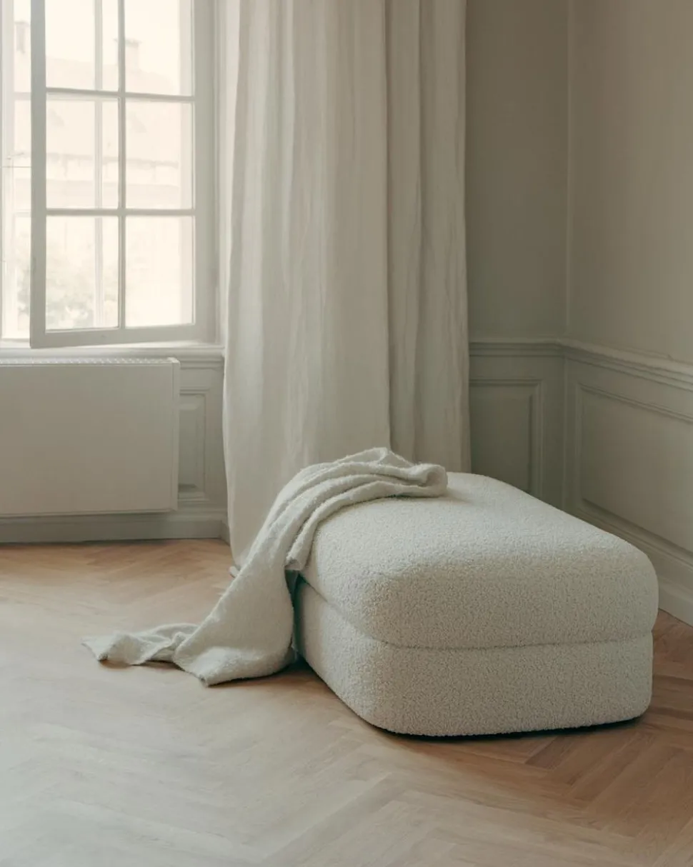 Der Covent Pouf Small ist vielseitig einsetzbar und lässt sich leicht in Ihr Zuhause integrieren. Stellen Sie ihn neben das Sofa, um sich zu entspannen, oder lassen Sie ihn als skulpturale Ergänzung für sich stehen. Kombinieren Sie ihn mit anderen Stücken aus der New Works-Kollektion, um einen kohärenten und modernen Look zu schaffen, der nordische Ruhe und Raffinesse ausstrahlt.