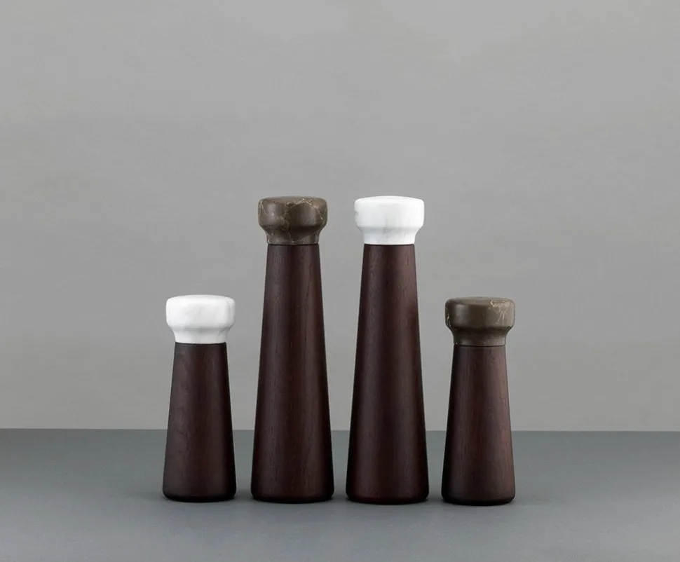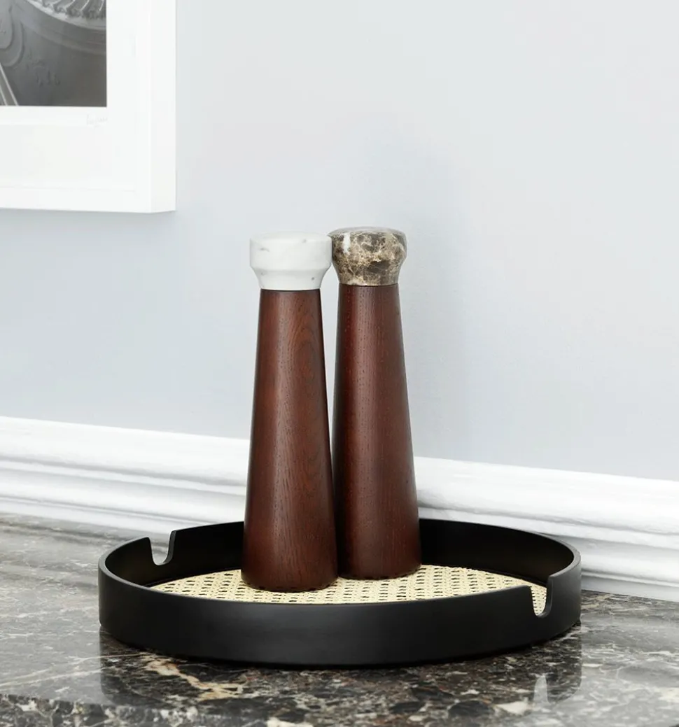 Simon Legald sagt: „Die Mühlen, der Mörser mit Stößel und der Nudel sind allesamt traditionelle Küchengeräte, die für aktive Arbeiten in der Küche verwendet werden. Deshalb müssen die Utensilien langlebig sein. Außerdem wird die Arbeit von Hand erledigt, so dass es für mich wichtig ist, dass die Qualität nicht nur sichtbar, sondern auch fühlbar ist, wenn ich die Produkte halte. Der Marmor und die Eiche haben diesen Zweck perfekt erfüllt.“