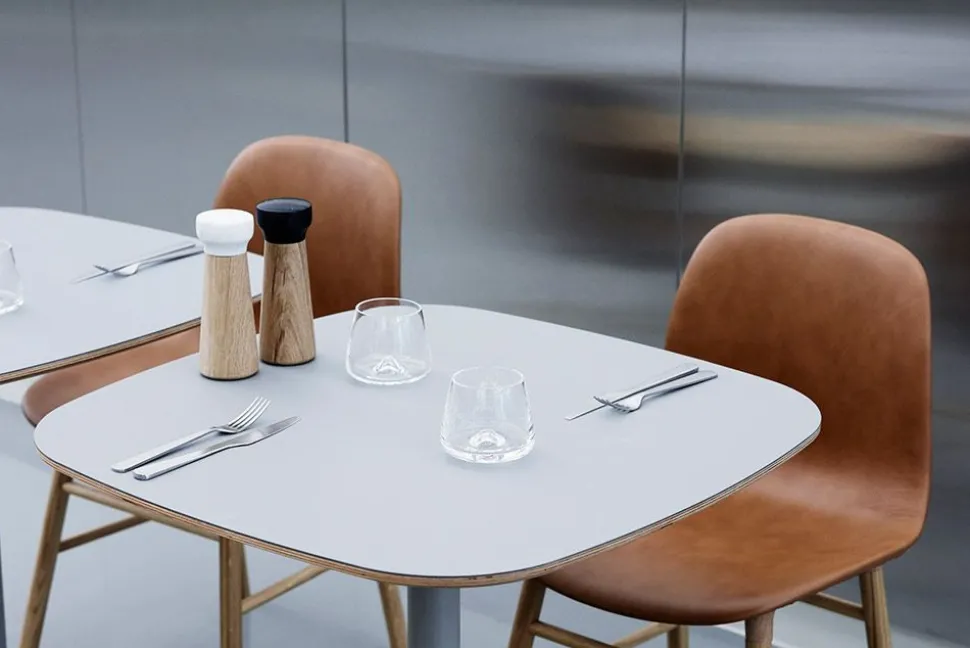 Simon Legald sagt: „Die Mühlen, der Mörser mit Stößel und der Nudel sind allesamt traditionelle Küchengeräte, die für aktive Arbeiten in der Küche verwendet werden. Deshalb müssen die Utensilien langlebig sein. Außerdem wird die Arbeit von Hand erledigt, so dass es für mich wichtig ist, dass die Qualität nicht nur sichtbar, sondern auch fühlbar ist, wenn ich die Produkte halte. Der Marmor und die Eiche haben diesen Zweck perfekt erfüllt.“