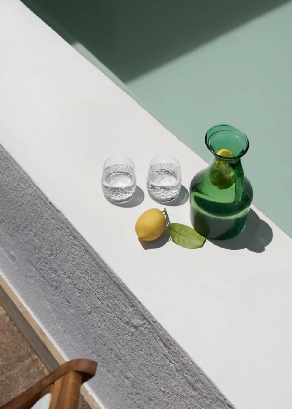 Knuspriges Aqua ist Teil der exklusiven Crispy-Serie von . Die Serie besteht aus Schalen, Krügen, Karaffen, Vasen und einer Vielzahl von feinen Gläsern.