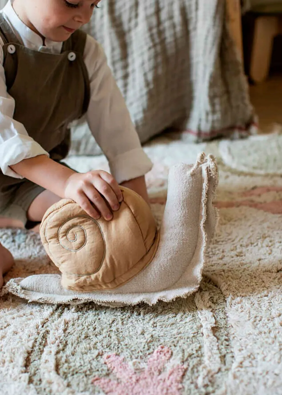 Das Kissen Lazy Snaili von ist ein Kinderkissen und ein Kinderteddybär in einem. Der Teddybär aus der Reihe Fantasy Garden hat die Form einer niedlichen Schnecke und ist die perfekte Ergänzung für jedes Kinderzimmer. Das Kissen ist weich und bequem, um den Kopf darauf auszuruhen, und es ist auch ein lustiger und interaktiver Teddybär, der zum Spielen und Kuscheln verwendet werden kann. Die Schnecke ist nicht nur ein Kissen – sie ist ein lebendiger Spielkamerad, der zu stundenlangem fantasievollem Spiel anregen kann. Mit seinem herrlich weichen Stoff und seiner lustigen Form wird dieser Kinderteddybär sicher ein Hit für Kinder und Erwachsene sein.