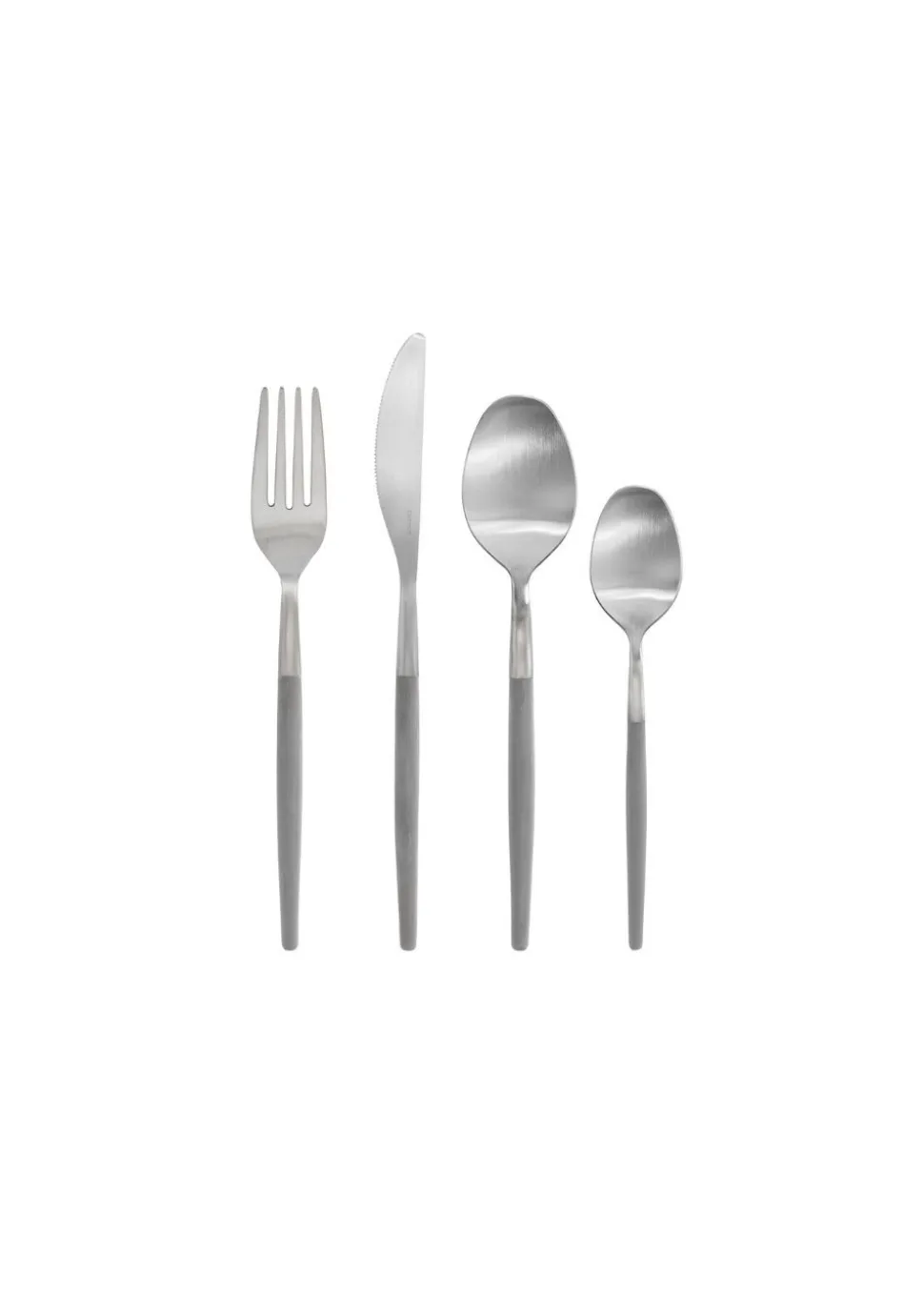 Das feminine Besteckset Maxime wurde von Theresa Rand entworfen. Das Besteck ist aus rostfreiem Stahl gefertigt und in den Farben Mourning Dove und Sharkskin erhältlich. Das Besteckset Maxime wurde mit dem Ziel entworfen, das Auge zu erfreuen und dem täglichen Gebrauch zu widerstehen. Mit seiner schlanken Silhouette, den leicht geschwungenen Details und den dezenten Farben stellt das Besteck eine unbestreitbar feminine Interpretation des traditionellen Bestecks dar. Spülmaschinenfest.