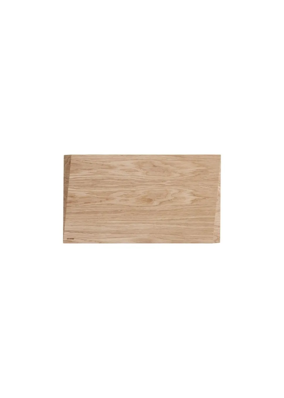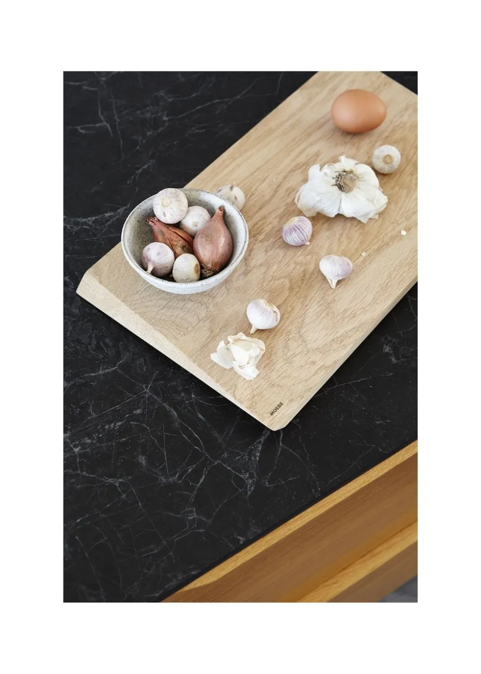 Das Schneidebrett wird von Moebe hergestellt. Das Schneidebrett wird aus Eichenholz hergestellt. Das Brett kann sowohl als Schneidebrett verwendet werden, kann aber auch als Serviertablett fungieren. Die V-förmigen Kanten des Schneidebretts dienen als Griffe.