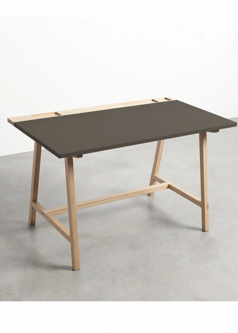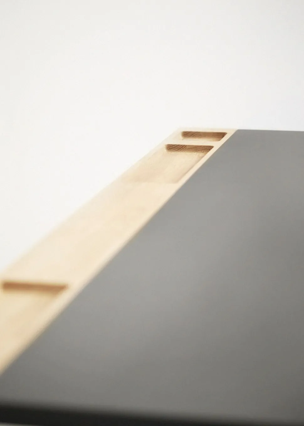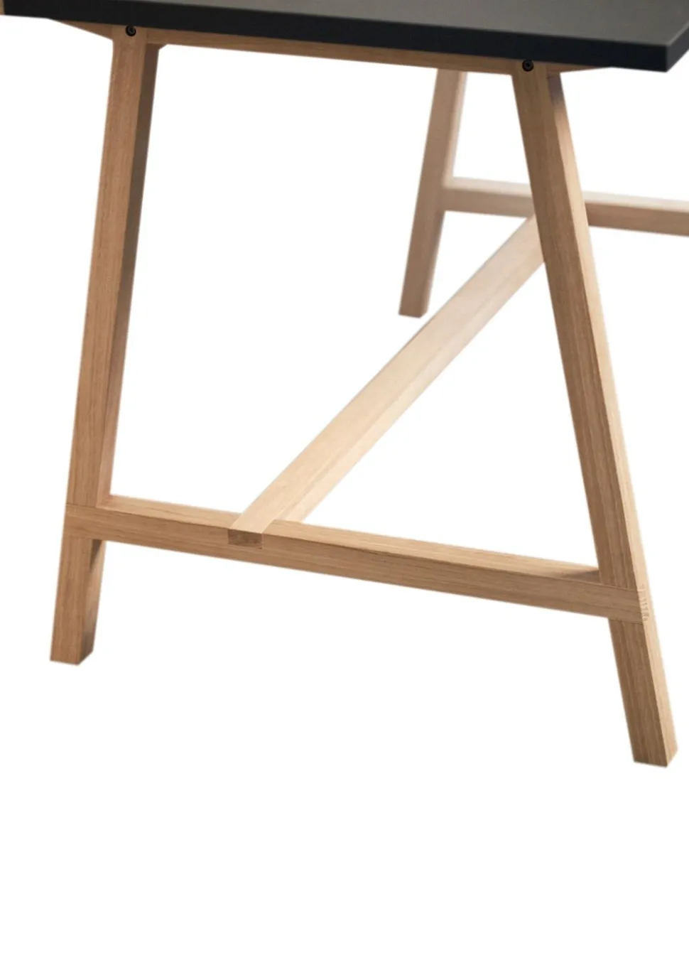 Der D1-Arbeitsplatz von Andersen ist nicht nur ein praktisches und funktionelles Arbeitsmöbel, sondern auch ein extrem leichtes, elegantes und einfaches Angebot für einen Arbeitstisch mit Fokus auf den skandinavischen Minimalismus. Das Tischgestell besteht aus matt weiß lackierter Eiche in Kombination mit einer Tischplatte aus anthrazitgrauem Linoleum, das sich durch kleine praktische Details auszeichnet, die den Tisch noch funktionaler machen.