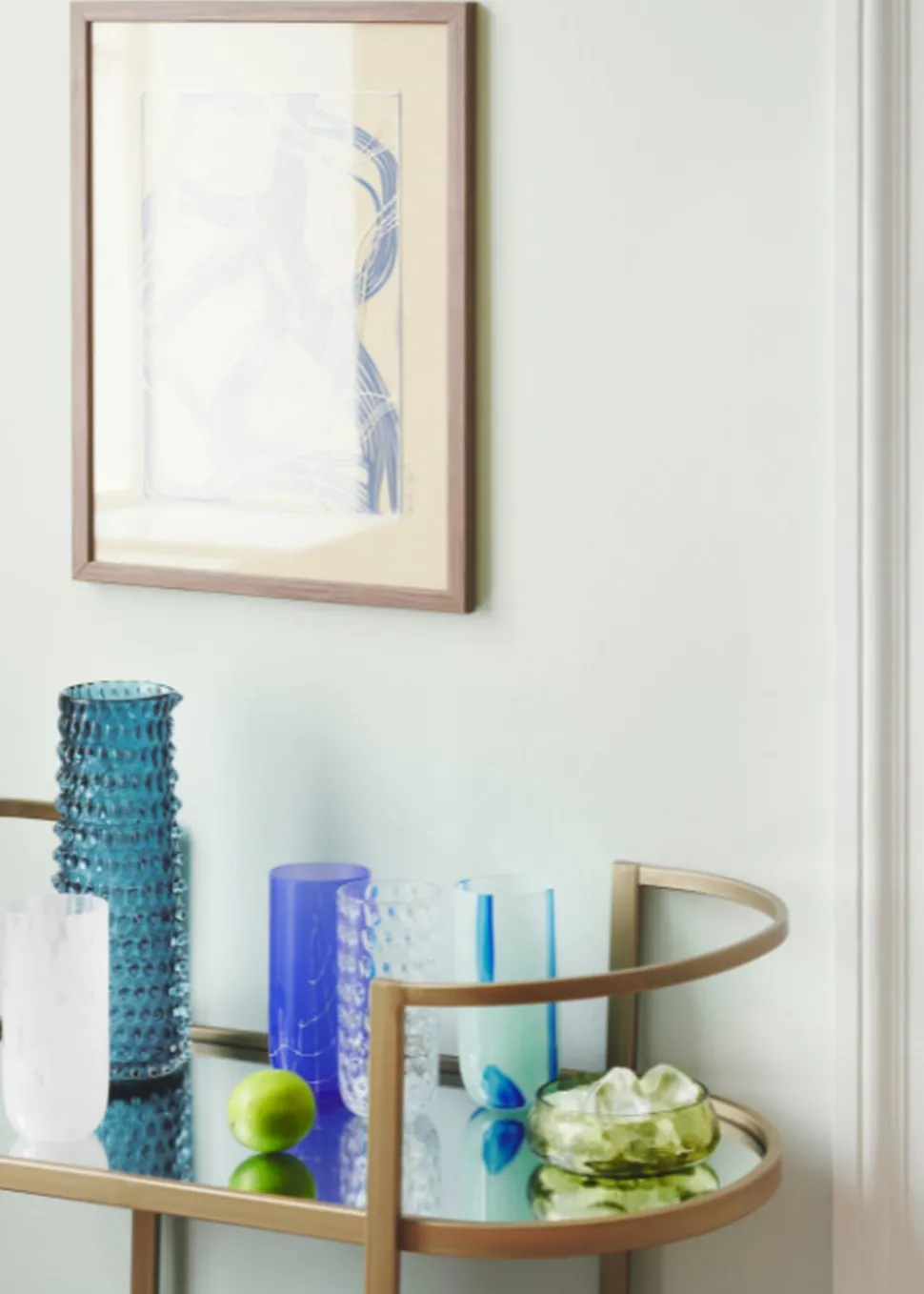 Schöner Krug, der vom regnerischen dänischen Sommer inspiriert wurde. Dies zeigt sich in der Struktur des Glases, das so gestaltet ist, dass es aussieht, als seien viele Regentropfen auf dem Krug. Der Krug ist mundgeblasen aus hochwertigem Glas aus Böhmen, Tschechische Republik. Verwenden Sie diesen Krug das ganze Jahr über sowohl als normalen Krug, sondern Sie können auch wählen, um es als eine Vase mit einigen schönen Blumen in ihm für Ihren Tisch decken. HINWEIS: Alle Krüge sind mundgeblasen, was bedeutet, dass es leichte Abweichungen in Farbe und Form gibt, aber nichts, was Sie bemerken würden.