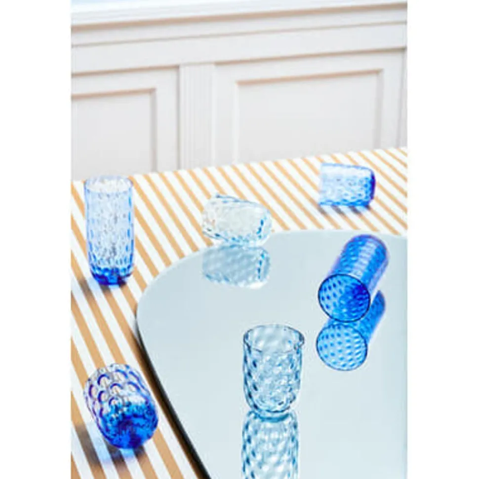 Schöne Gläser, die vom regnerischen dänischen Sommer inspiriert sind. Dies zeigt sich in der Struktur des Glases, das so gestaltet ist, dass es aussieht, als seien viele Regentropfen auf dem Glas. Das Glas ist mundgeblasen aus hochwertigem Glas aus Böhmen, Tschechische Republik. Verwenden Sie diese Gläser das ganze Jahr über als normales Glas, aber Sie können sie auch als Dekoration mit einer kleinen Blume darin verwenden. HINWEIS: Alle Gläser sind mundgeblasen, was bedeutet, dass es leichte Farb- und Formabweichungen gibt, die Sie jedoch nicht bemerken werden. „Danish Summer Tumbler Small Drops“ sind die gleichen Gläser wie „“, nur mit kleineren Tropfen. Diese schönen Gläser sind Teil der Serie Danish Summer, wo beide Gläser und Karaffen mit dem gleichen Design, das die regnerischen dänischen Sommer ist.