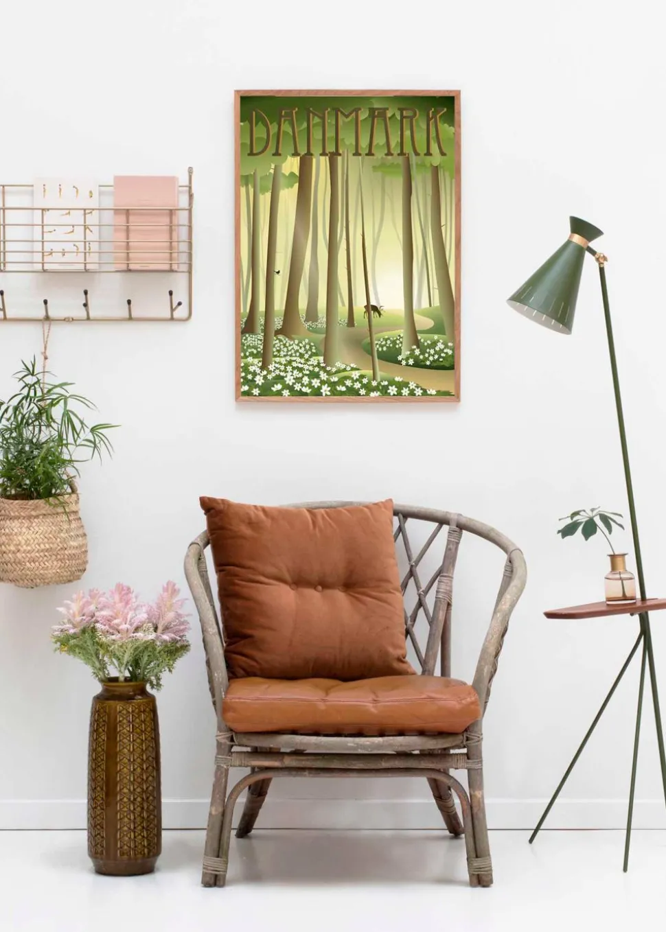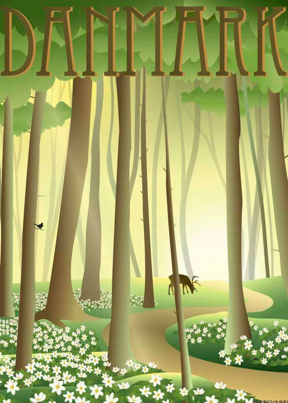 Schönes Poster von Vissevasse, aus der Sammlung Danmark Poster. Um das Poster herum: Die Anemonen werden oft als Zeichen dafür gesehen, dass der Sommer kommt, sie erstrecken sich weit und breit und bedecken den gesamten Waldboden.