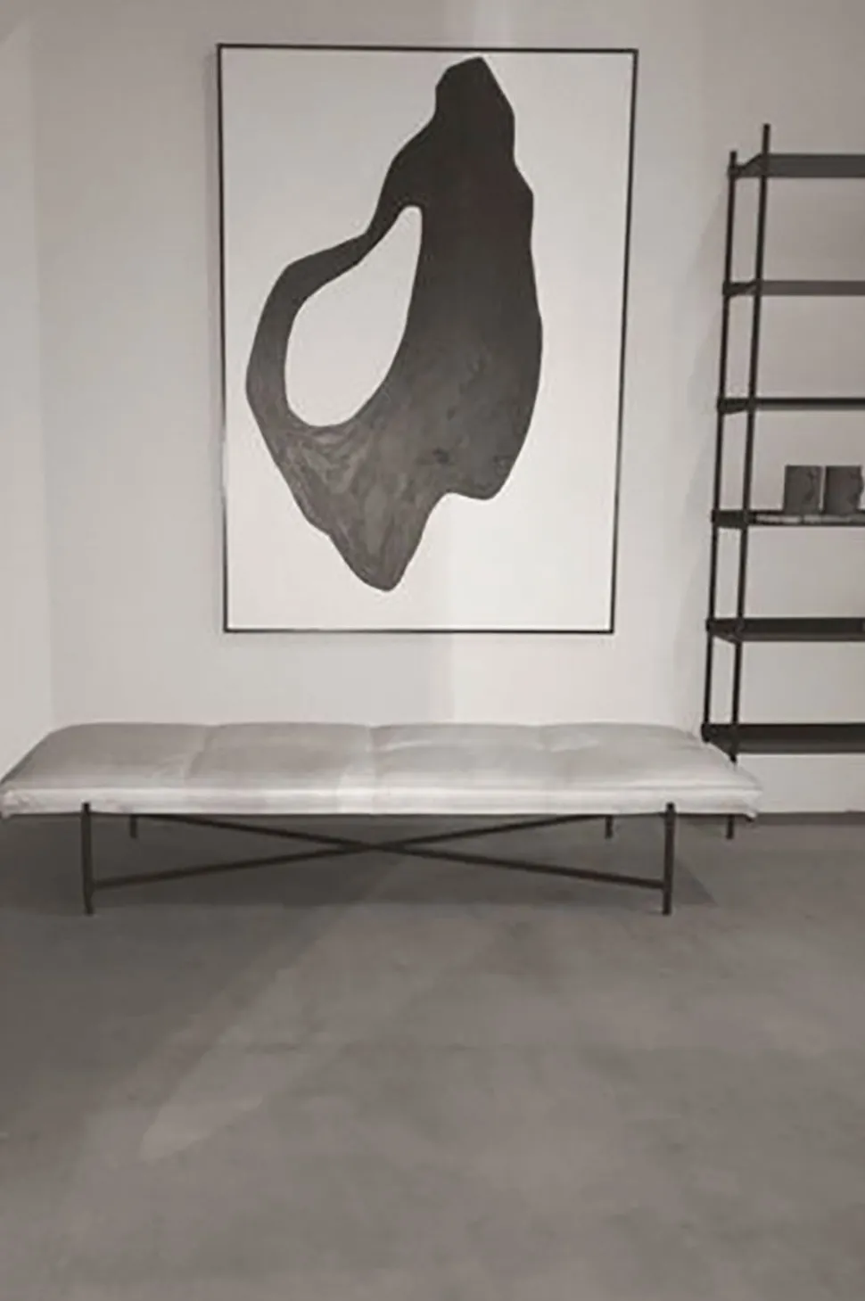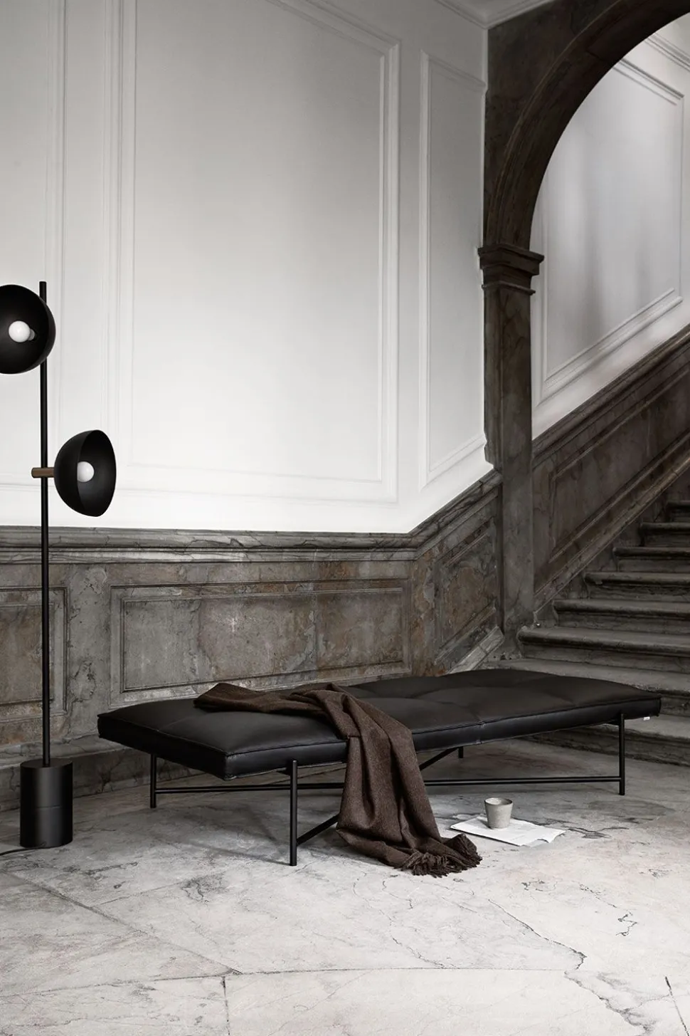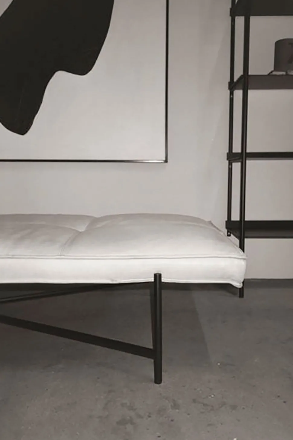 Das elegante Daybed ist ein Entwurf von Emil Thorup. Dieses Daybed ist mit seinem eleganten und schlichten Design sowie den klaren Linien und der schönen Kombination aus Stahl und optionalem Stoff ein schönes Kunstwerk für sich.