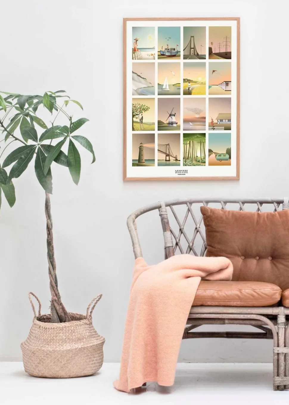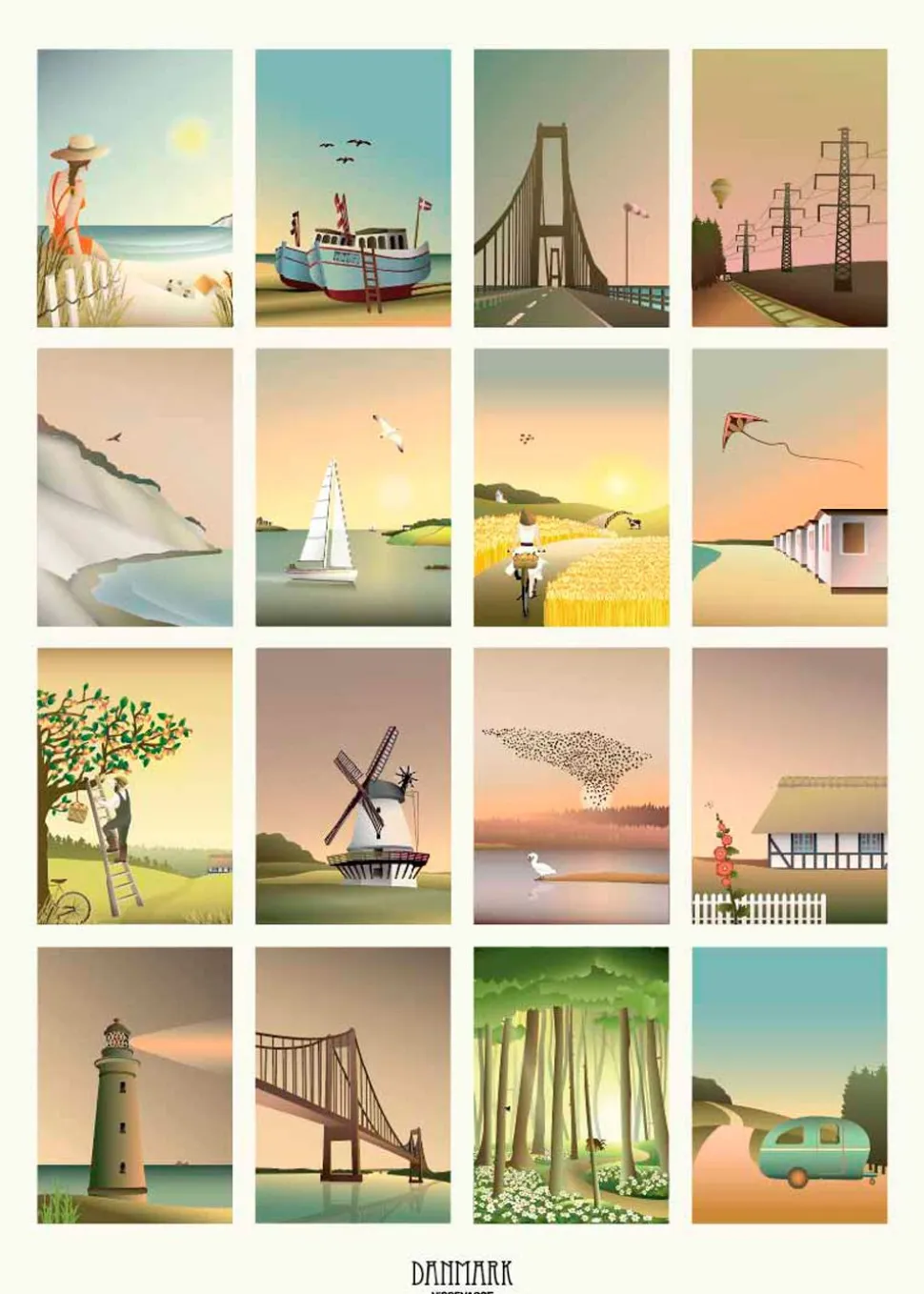 Schönes Poster von VisseVasse, aus der Sammlung Denmark-Poster. Um das Poster herum: Das Poster ist eine Sammlung der 16 verschiedenen dänischen Poster mit Motiven aus dem dänischen Land.